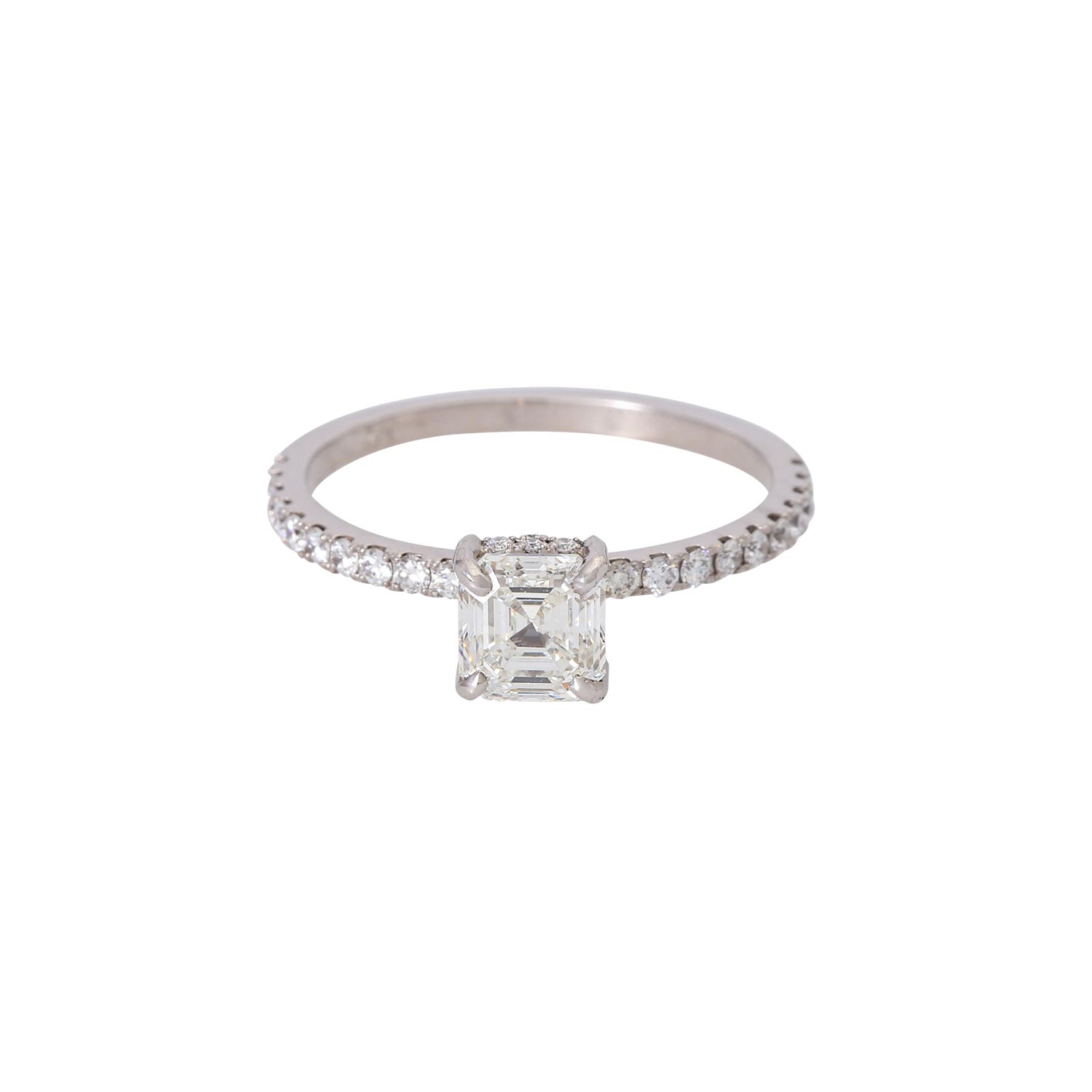 Ring mit Diamant im Smaragdschliff 1,02 cts. WEISS H/VSI.