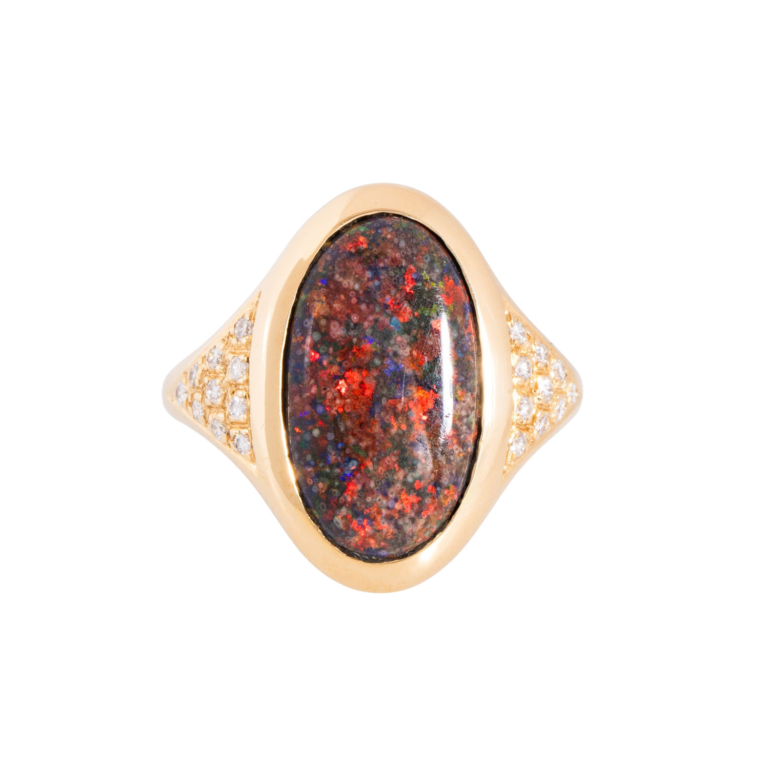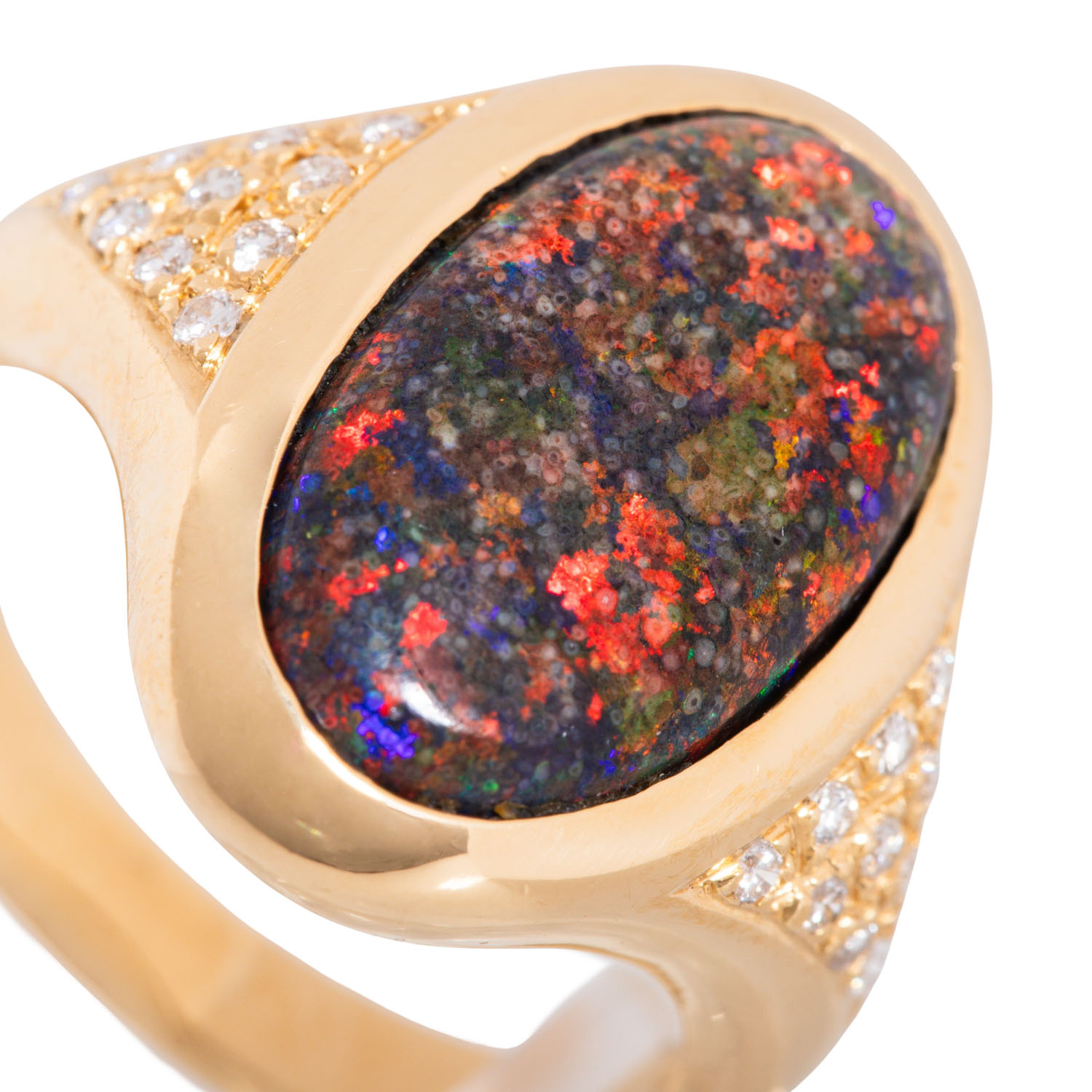 Ring mit Opal, bunten Turmalinen u. Brillanten: