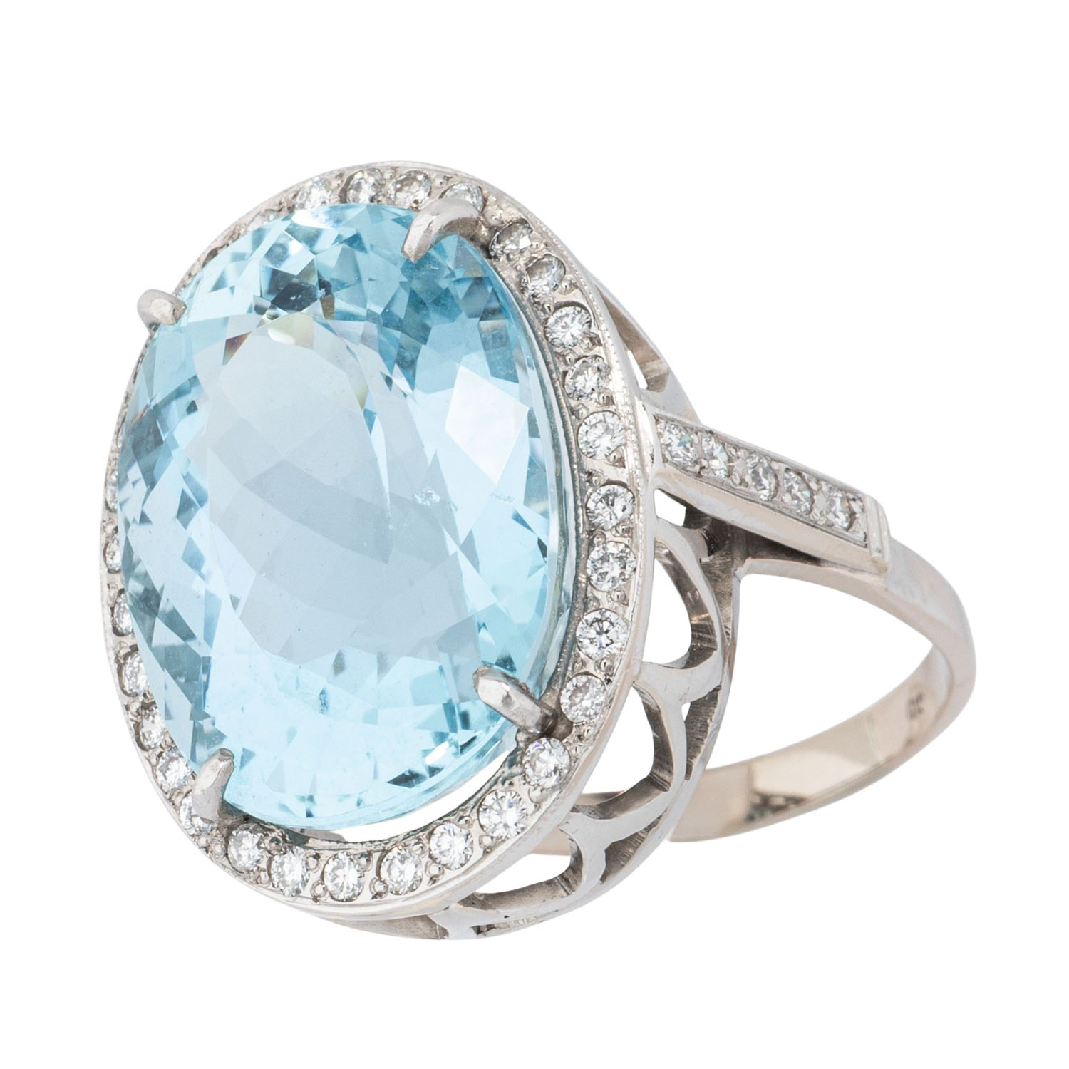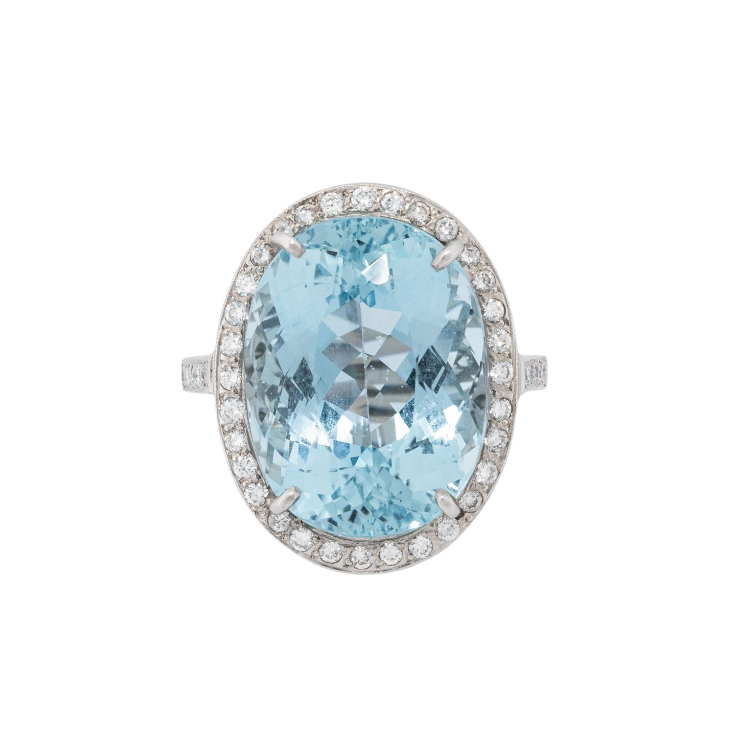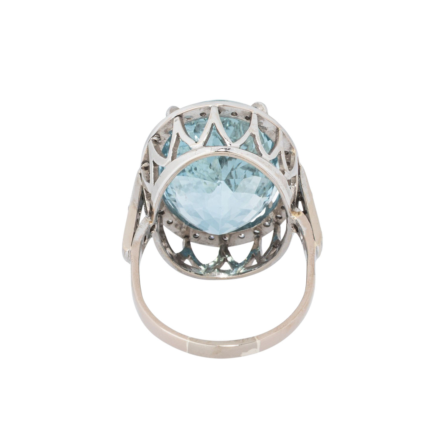 Ring mit Aquamarin entouriert von 22 Brillanten zus. 0,84 ct (grav.),
