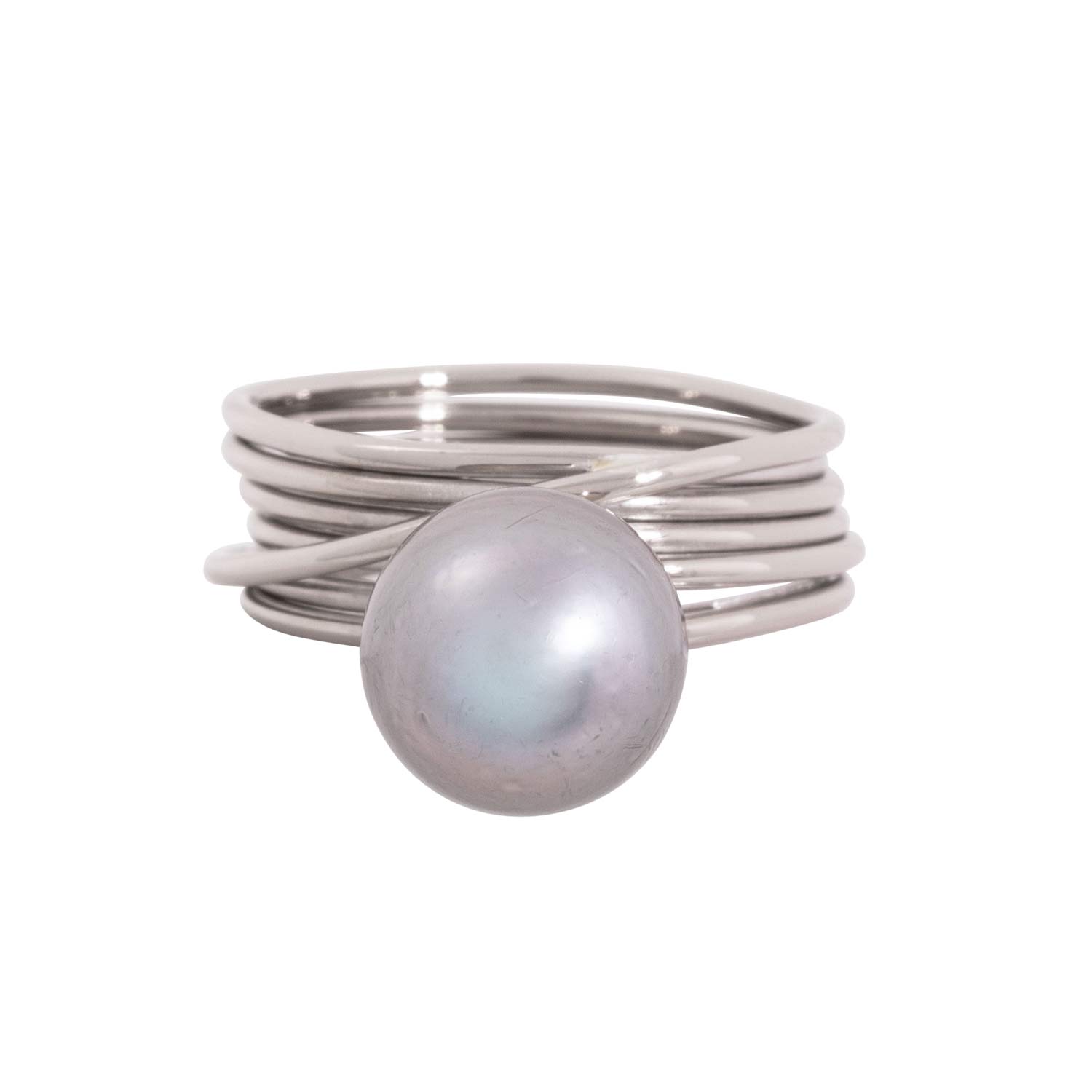 Ring mit Perle flankiert von Brillanten zus. ca. 0,26 ct,