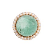 von ca. 30 ct u. kl. Saatperlen, 18K GG, 14,7 g, RW: 55, 1. Hälfte 20. Jh., leichte bis mäßige Tragespuren, Ringschiene etwas unrund, Smaragd mit kleineren Ausbrüchen. (6)