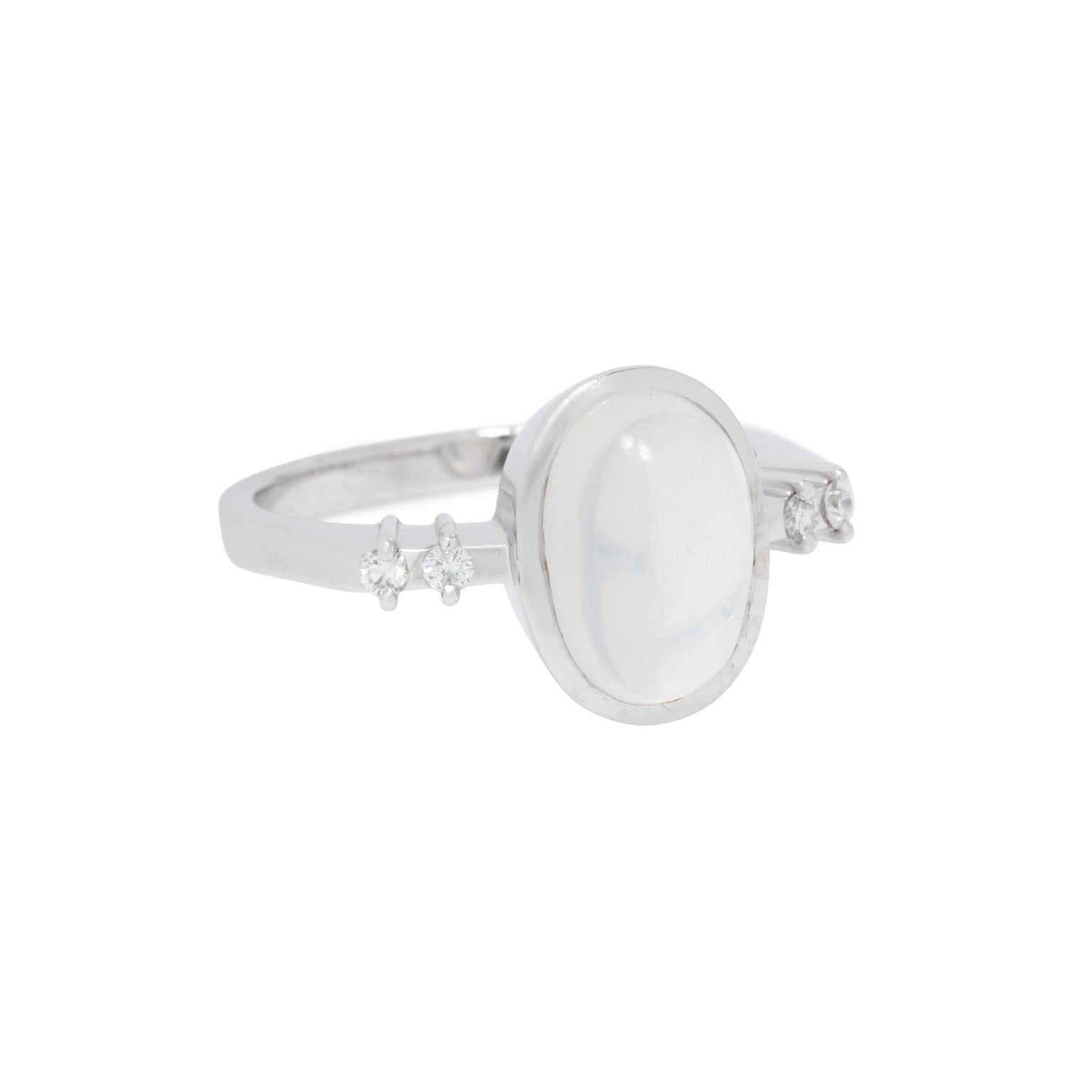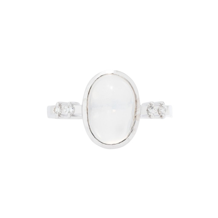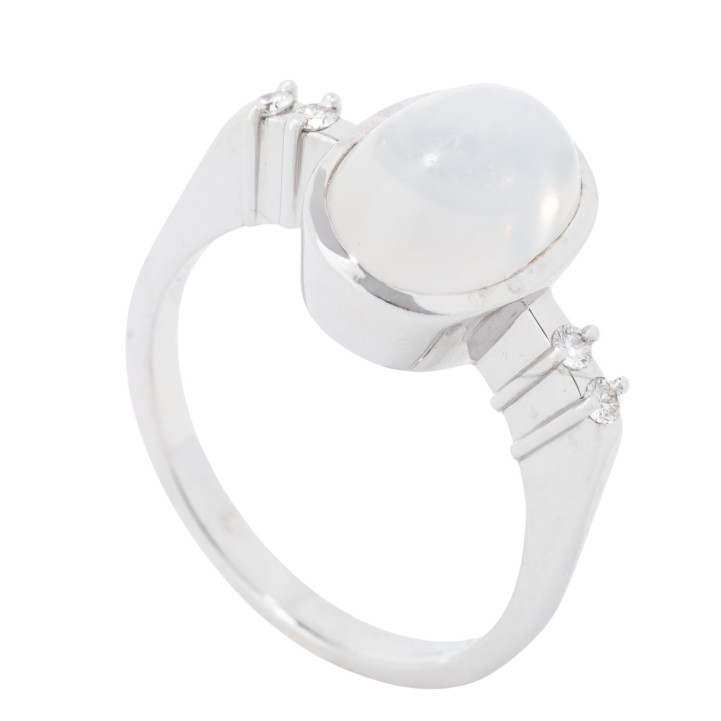 Ring mit Mondstein und 4 Brillaten zus. 0,10 ct (grav.),