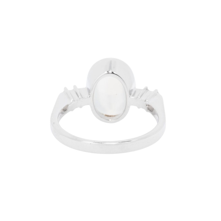 FW (G)/SI, Mondstein im Cabochonschliff ca. 12 x 8 mm, WG 18K, 7,5 g, RW: 60, B: ca. 2,4 - 13,5 mm, Ende 20. Jh., minimale Tragespuren.