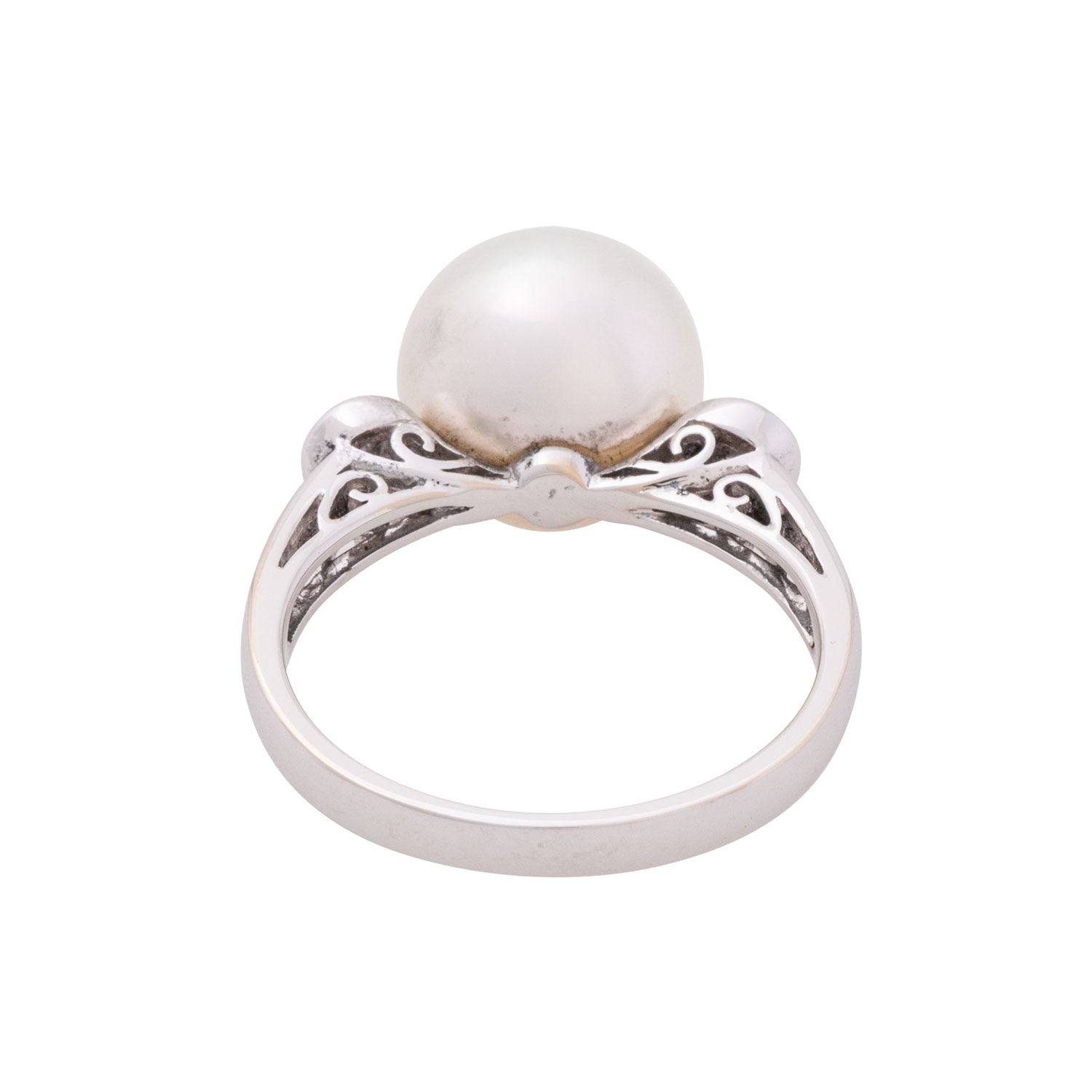 ca. LGW (I-J)/SI, feine Zuchtperle ca. 10 mm, WG 18K, 5 g, RW: 55, Ende 20. Jh., leichte Tragespuren.