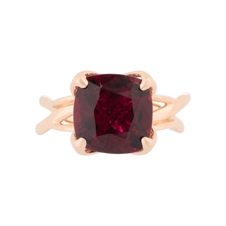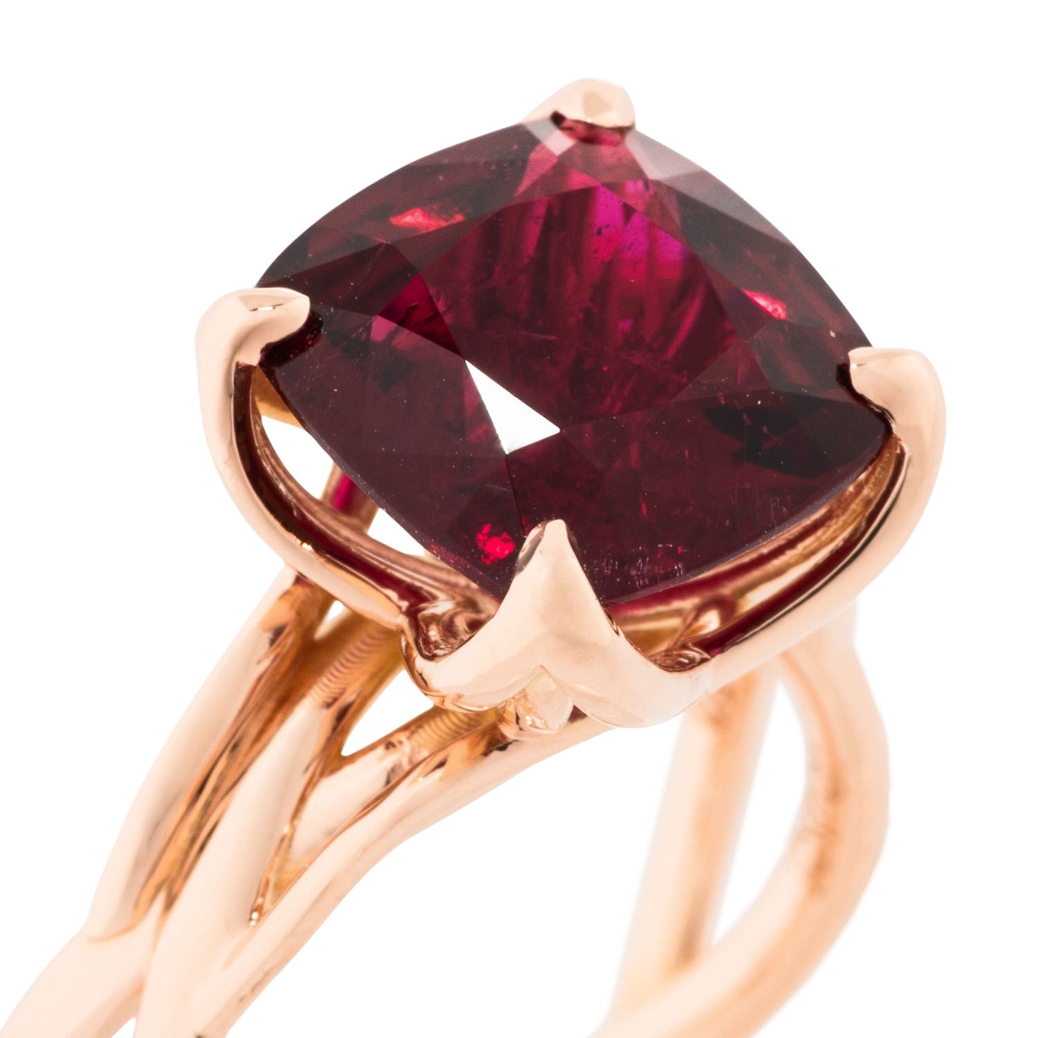 im facettierten Antikschliff, 4,0 ct. 10,5 mm, extravagante, ineinander verschlungene Ringschiene, RSG 18 K, RW 55 feine Goldschmiedearbeit