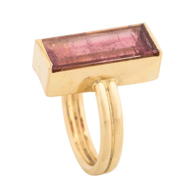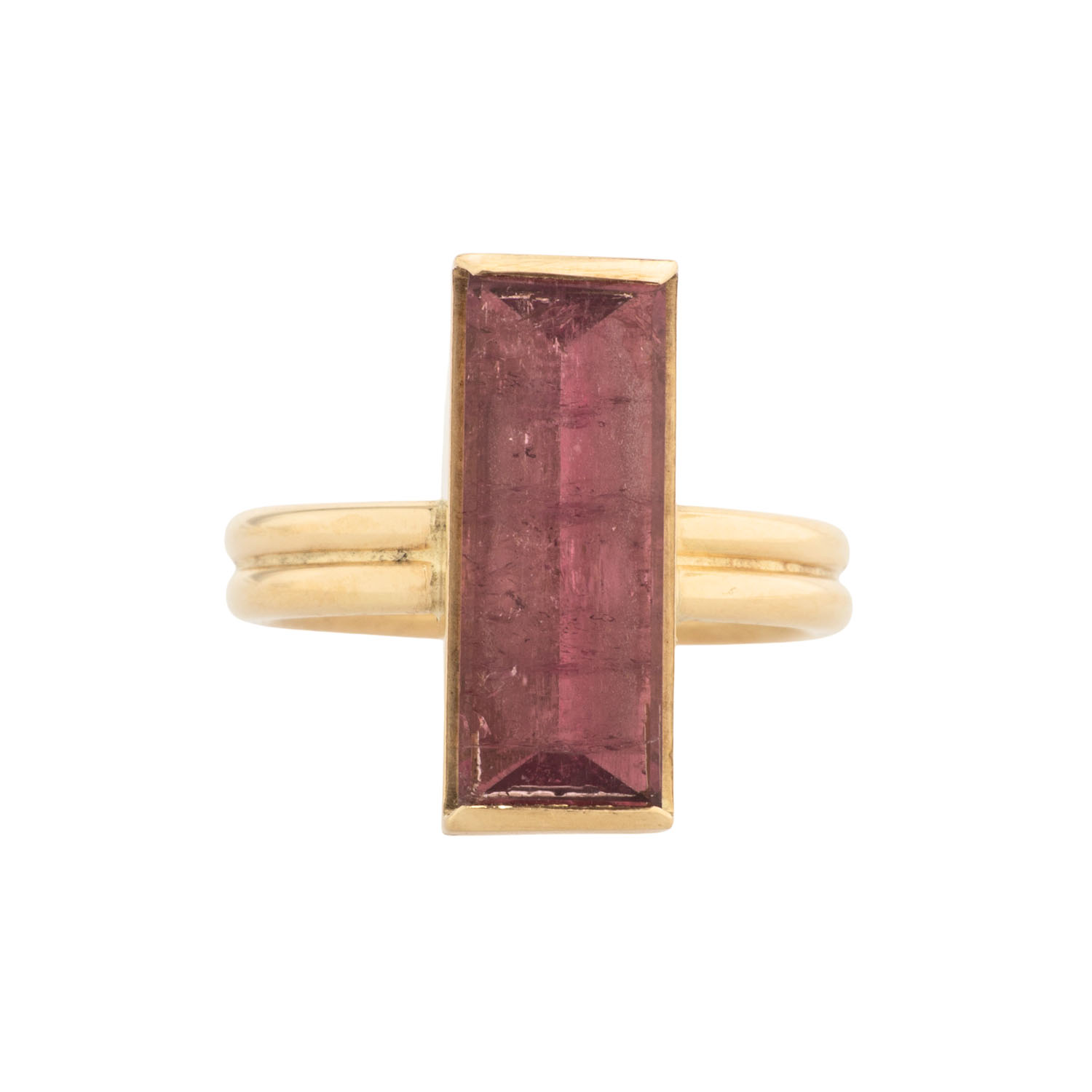 Ring mit Rubellit in rechteckigem Tafelschliff,