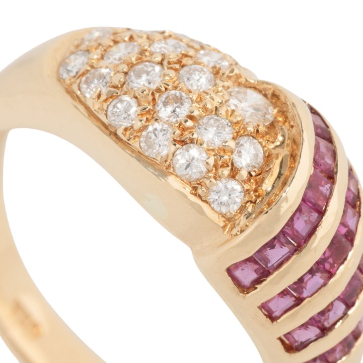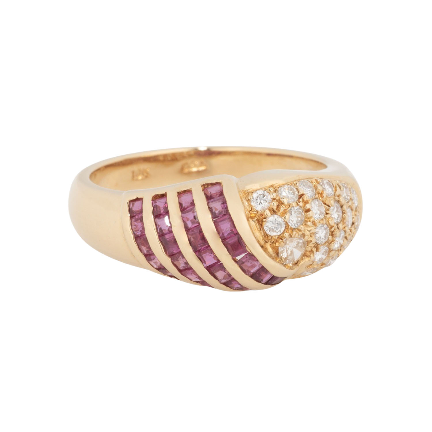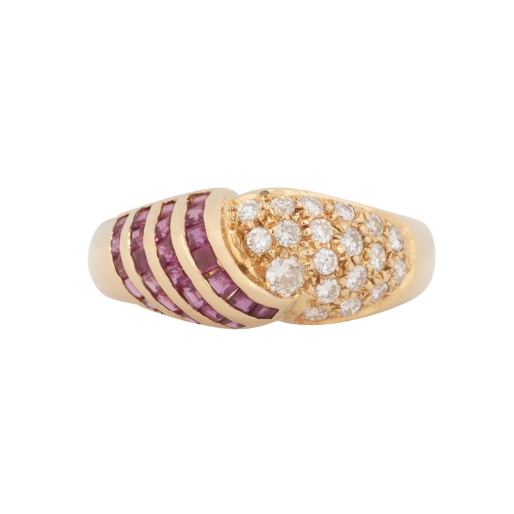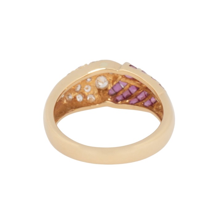 zus. ca. 0,60 ct, gute Farbe und Reinheit, GG 18K, 6 g, RW: 56, Ende 20. Jh., leichte Tragespuren.