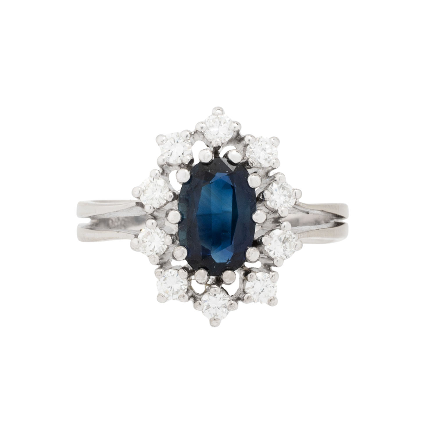 Ring mit Saphir ca. 0,86 ct und Diamanten