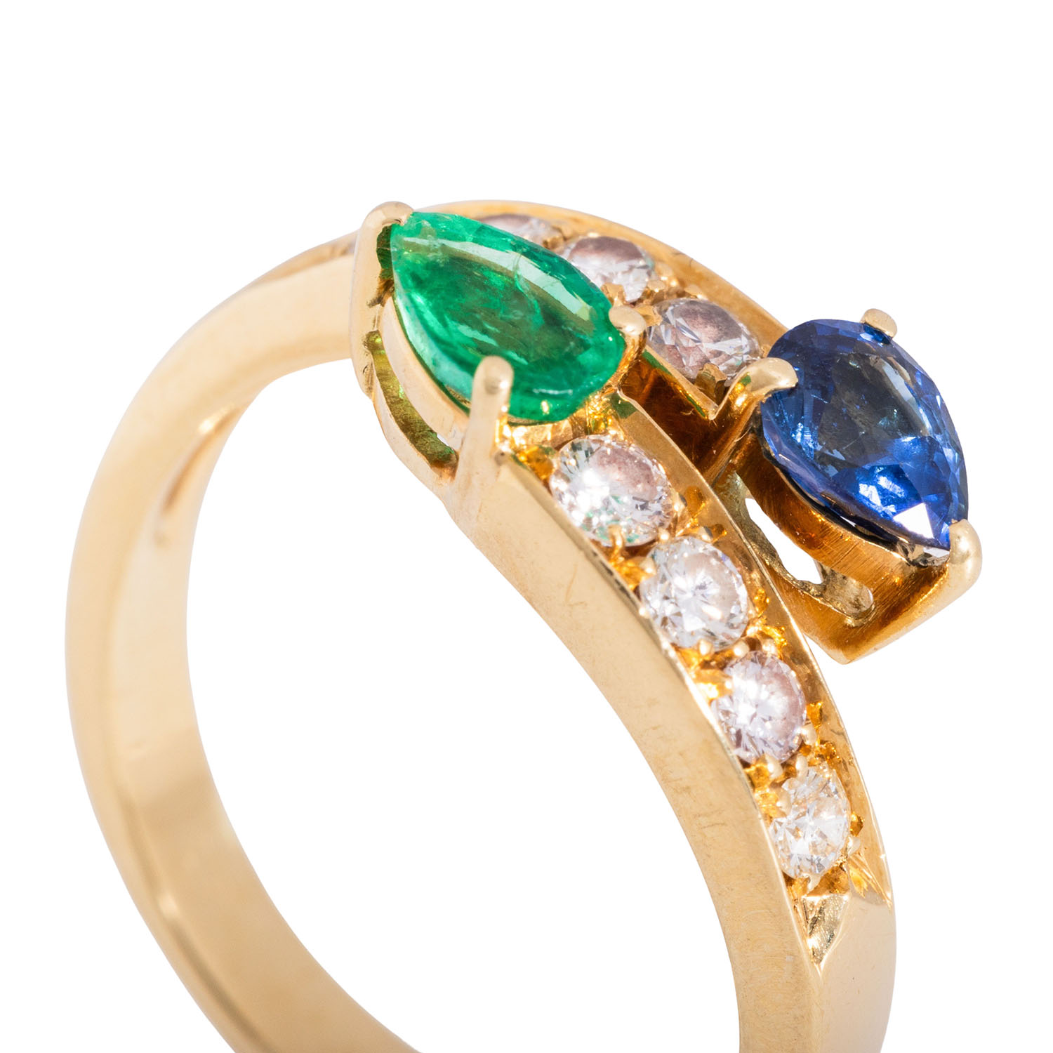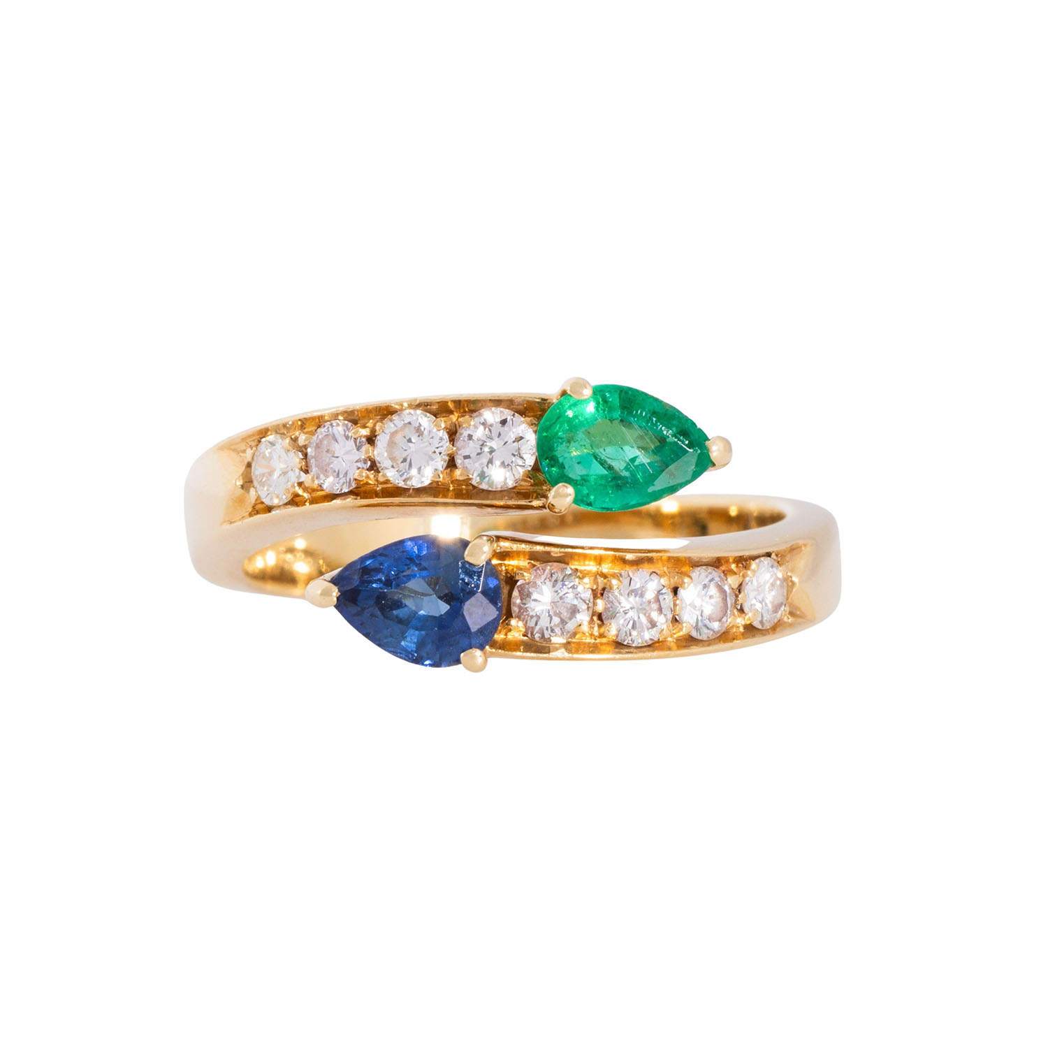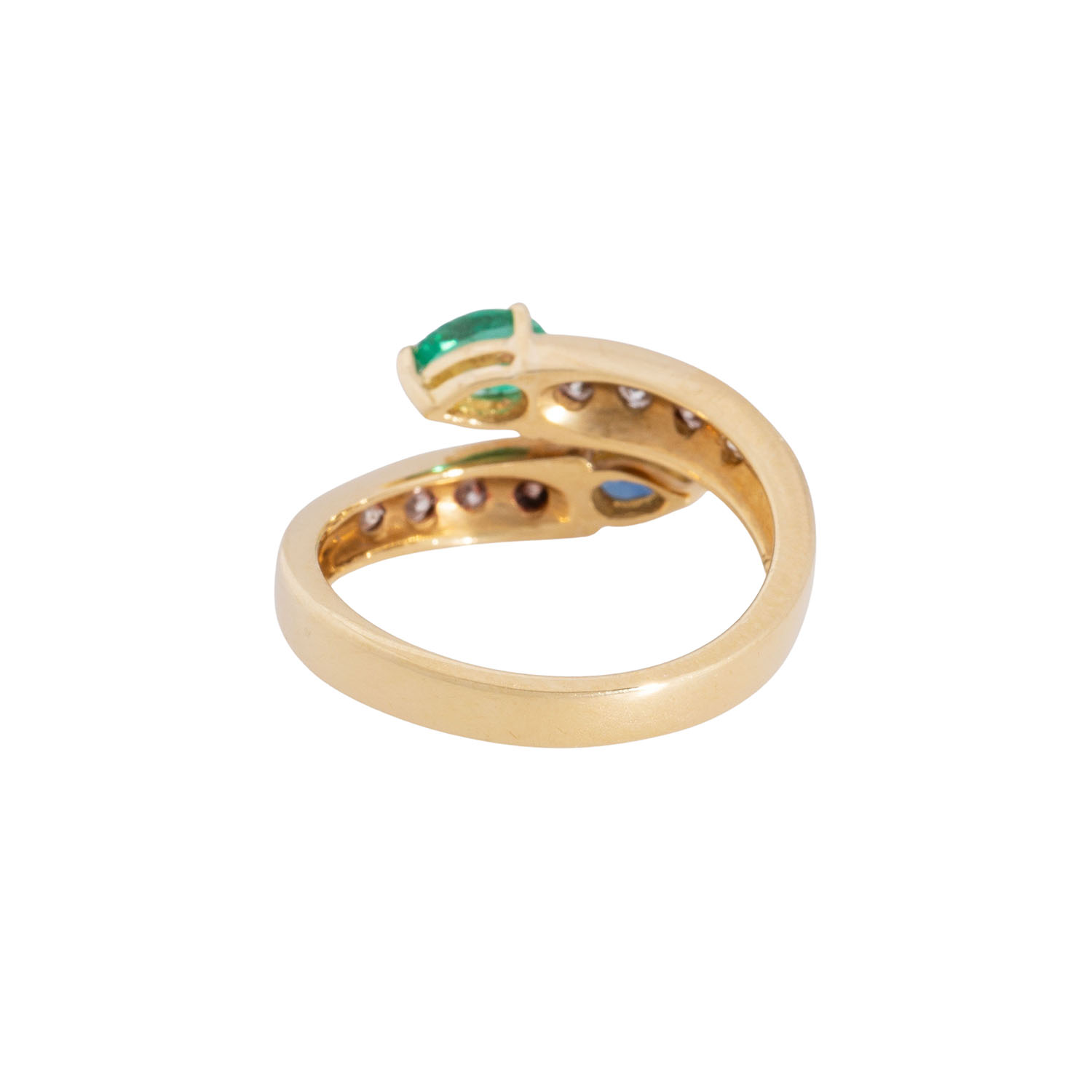 ca. 3,5 x 5,5 mm, berieben, 8 Brillanten zus. 0,28 ct, gute Farbe und Reinheit, GG 18K, 4,3 g, RW: 52, Ende 20. Jh., leichte Tragespuren.