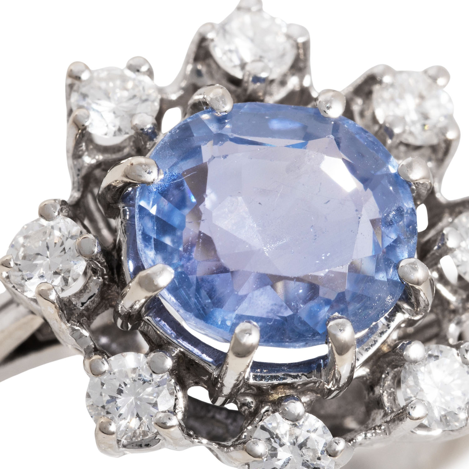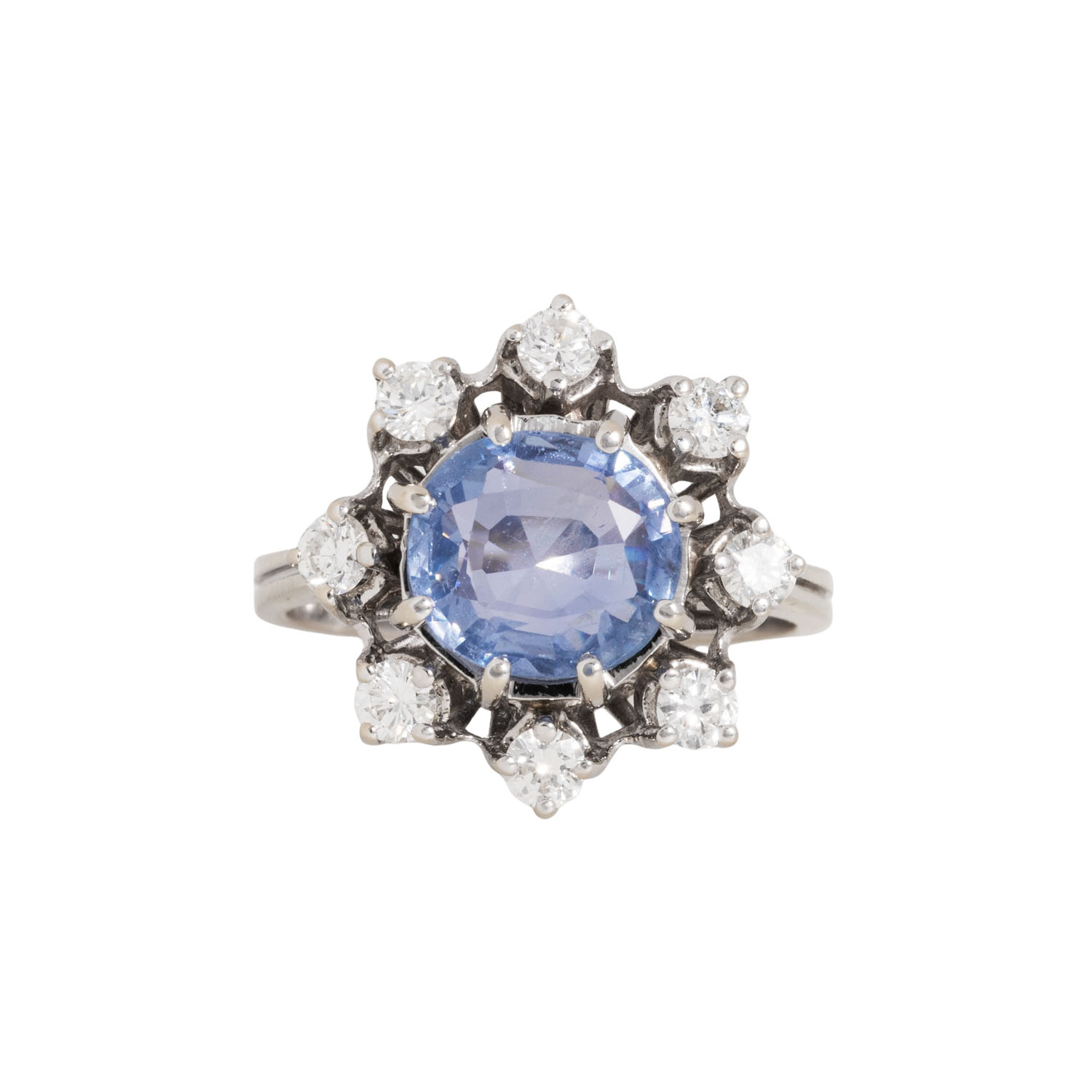 Ring mit Saphir, 6 Brillanten und 6 Achtkantdiamanten