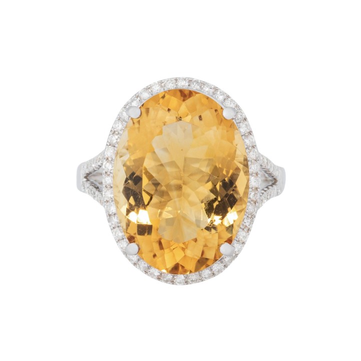und kleinen Brillanten zus. ca. 1 ct, gute Farbe, niedere Reinheit, 18K WG, 7,4 g, RW: 62, 21. Jh., leichte Tragespuren. (1)