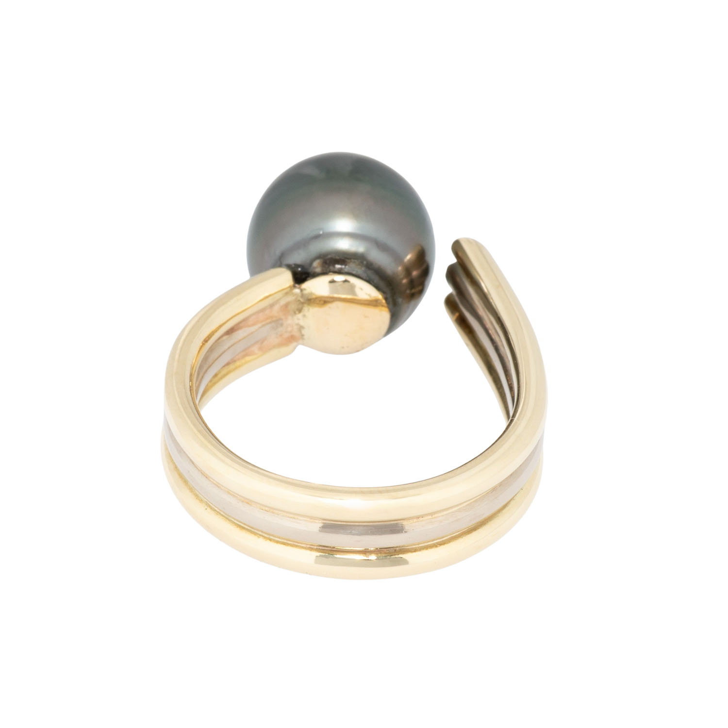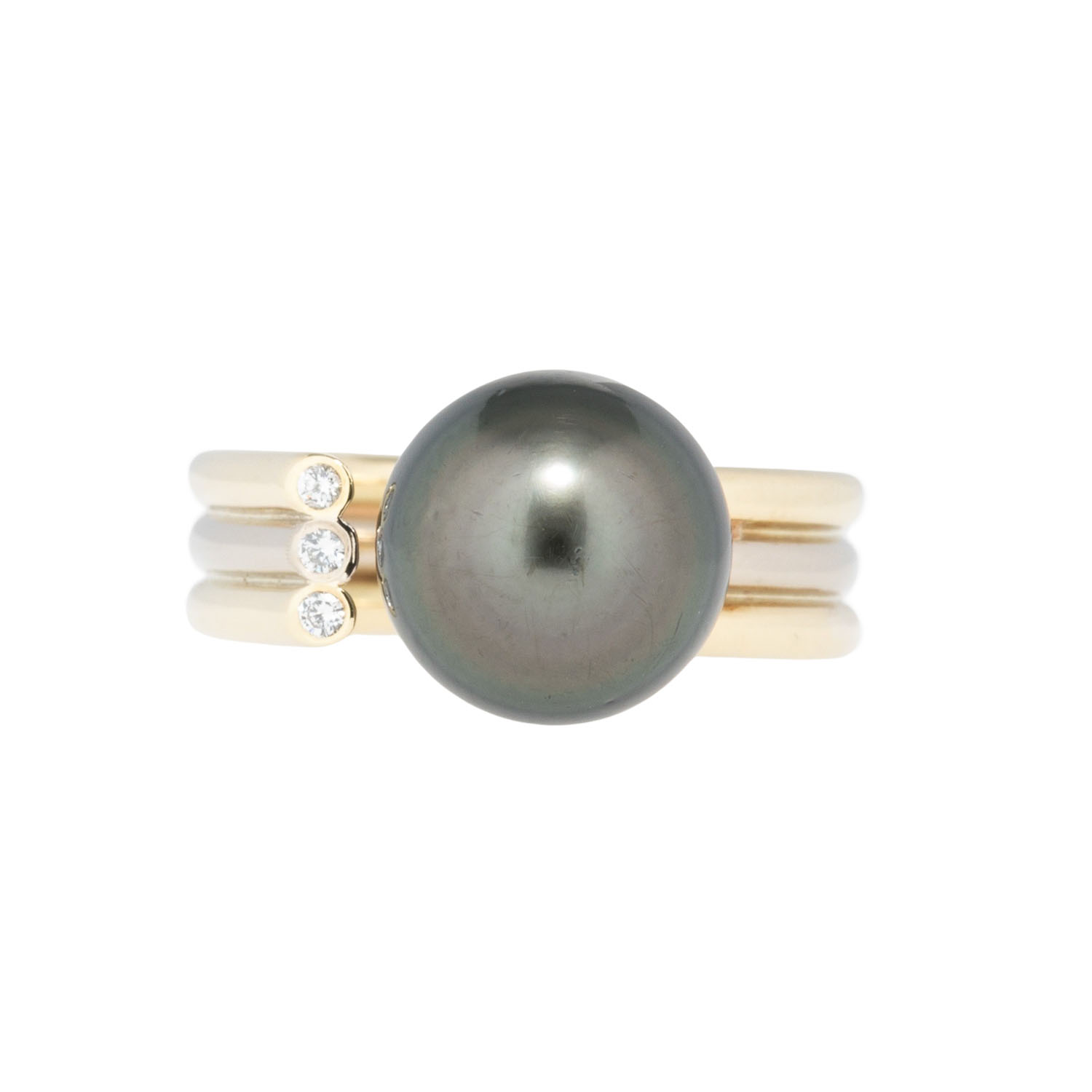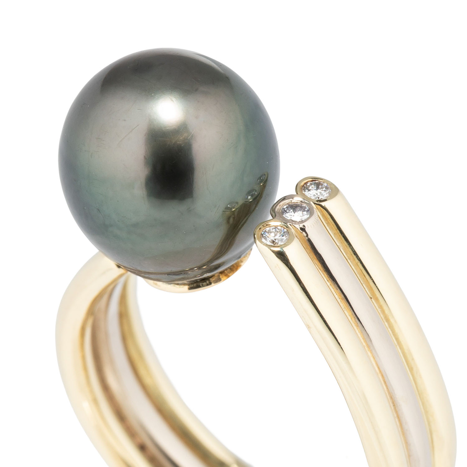 Ring mit schwarzer Tahitiperle und 4 Diamanten,