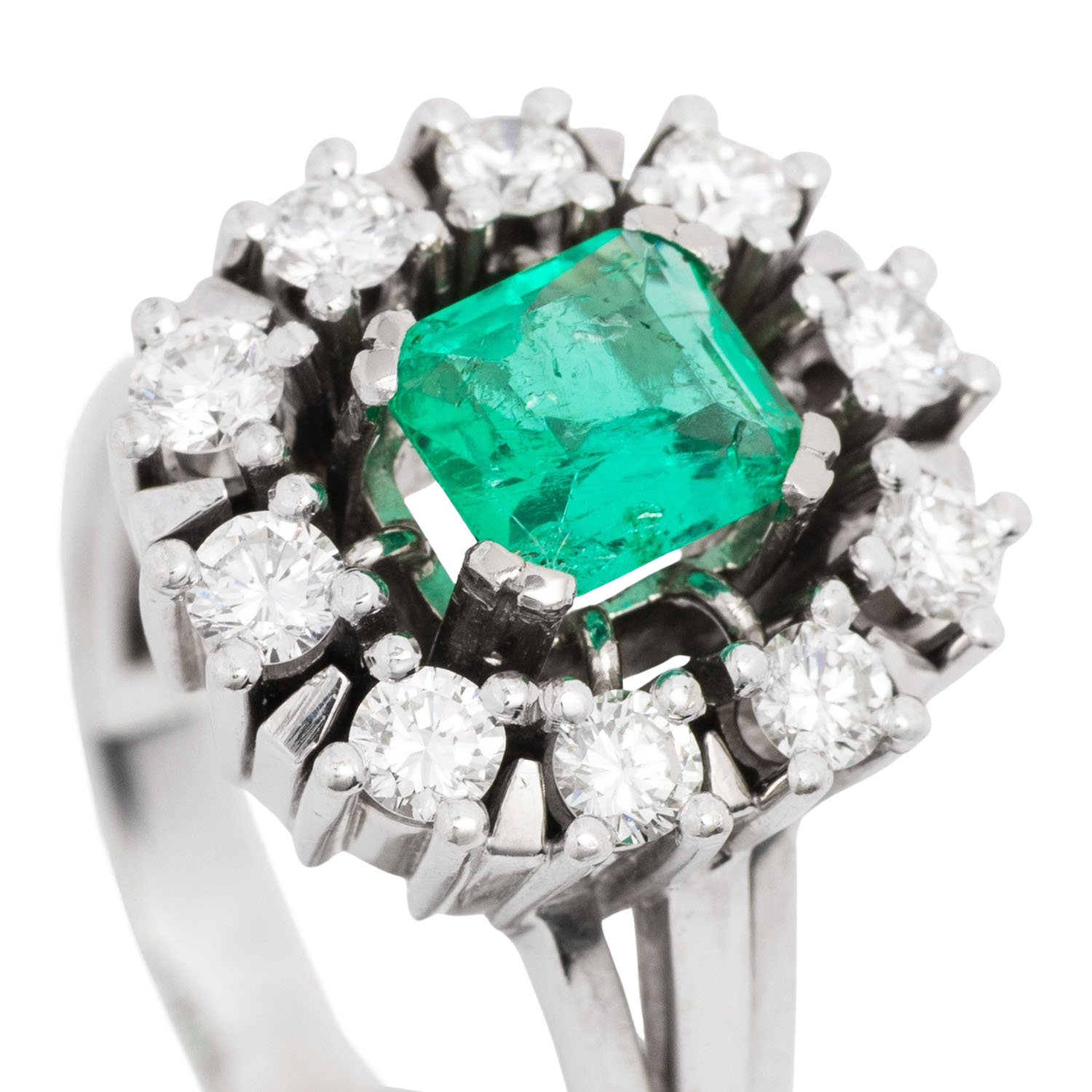 Ring mit Smaragd und Diamanten von zus. ca. 1,82 ct,