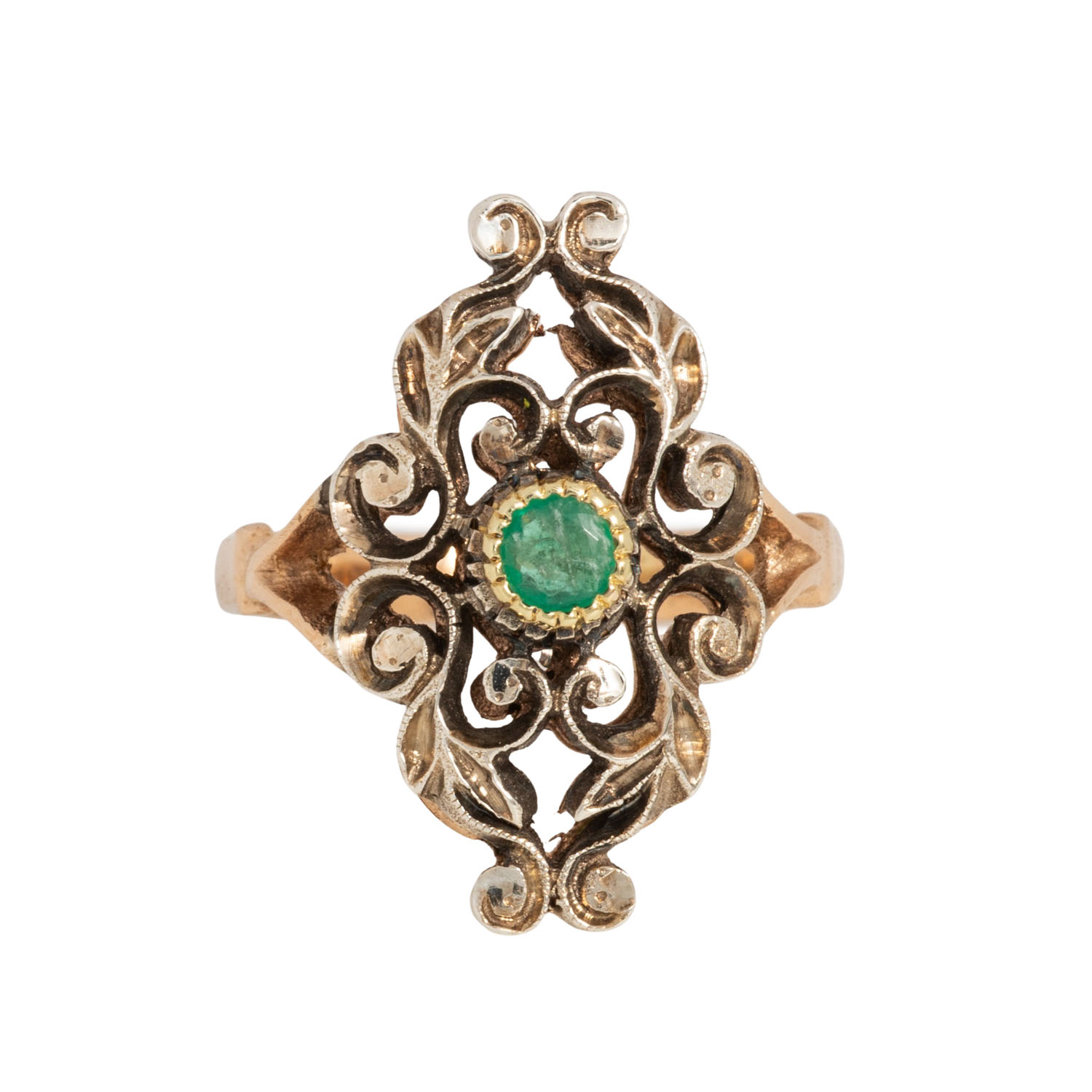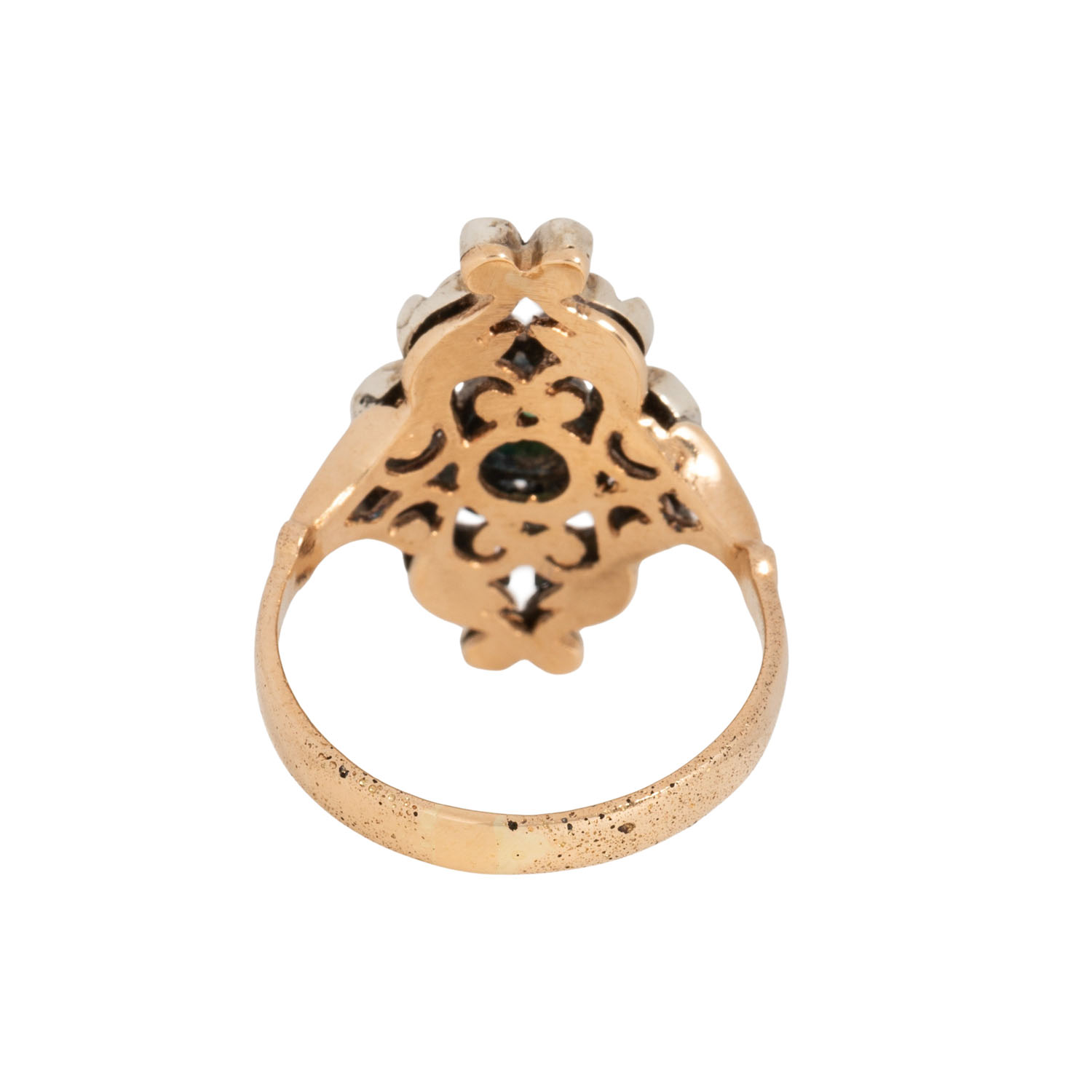 im fac. Rundschliff, ca. 0,10 ct, GG 14K/Schauseite Silber geschwärzt, 3,9 g, RW: 53, B: ca. 2,8 - 21,4 mm, 2. H. 20. Jh., Tragespuren.