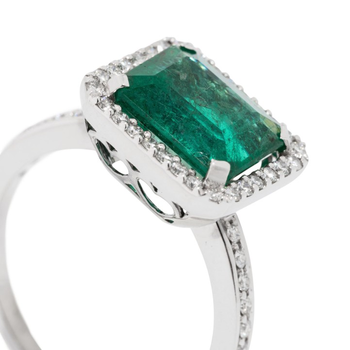 Ring mit Smaragd entouriert von Brillanten