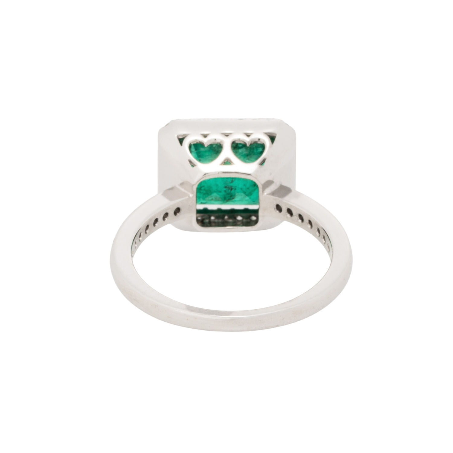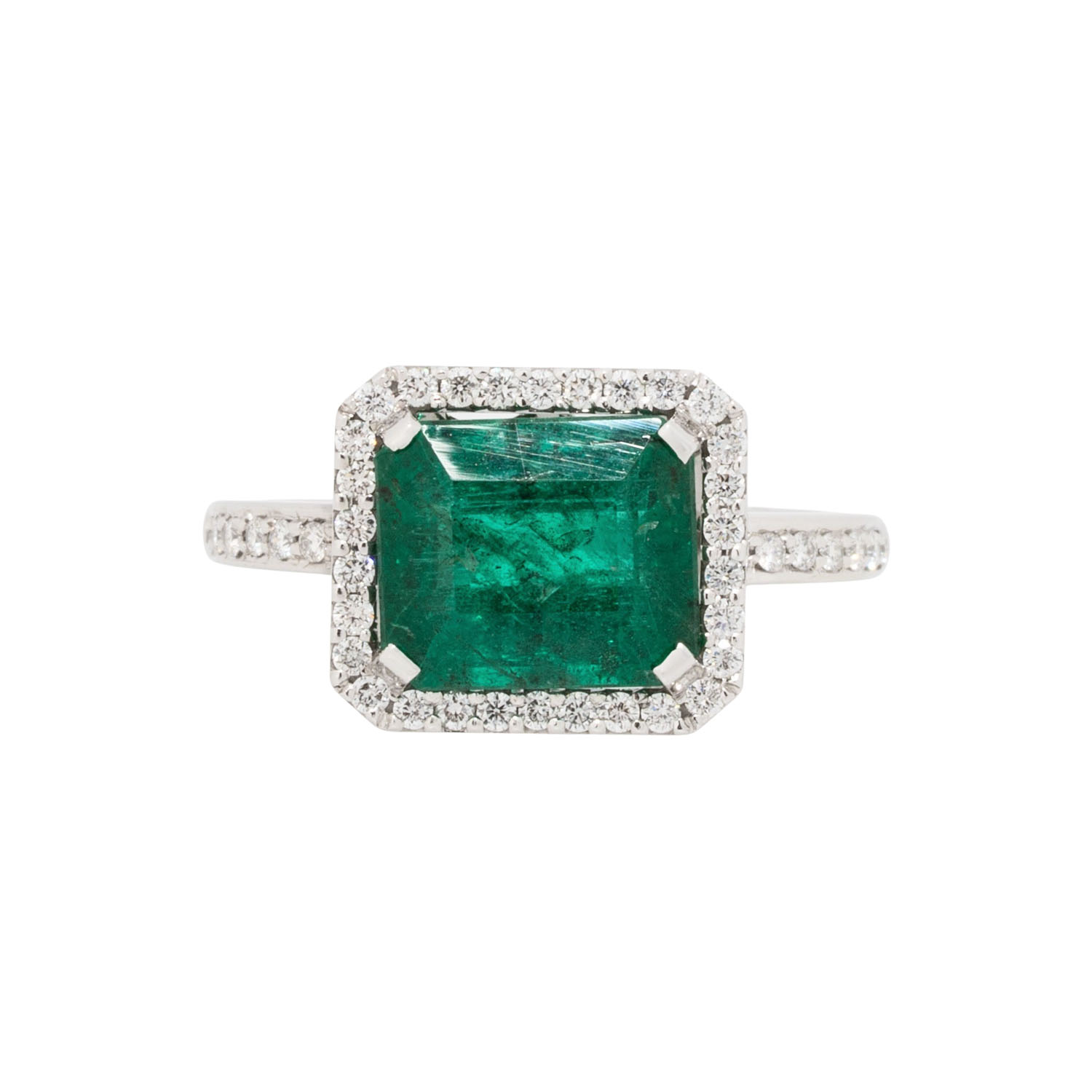 von zus. ca. 0,30 ct, gute Farbe und Reinheit, Smaragd ca. 3 ct, WG 18 K, 4,8 g, RW: 55, 21. Jh., leichte Tragespuren, Kanten bestossen