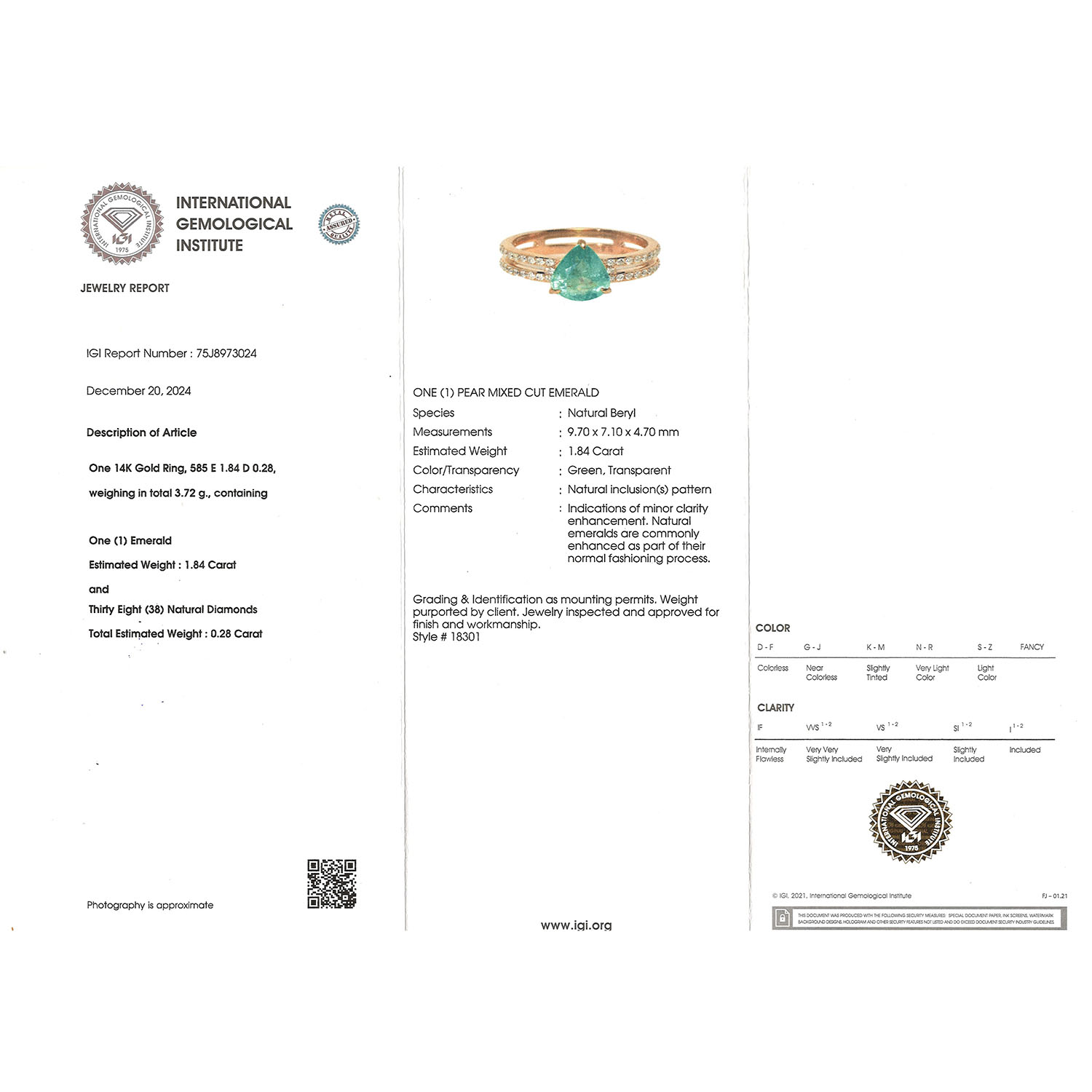 Ring mit Smaragdtropfen 1,84 ct und Brillanten