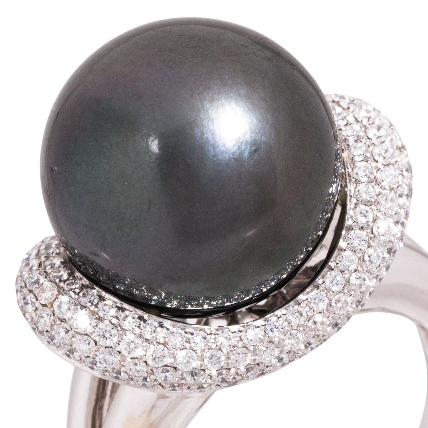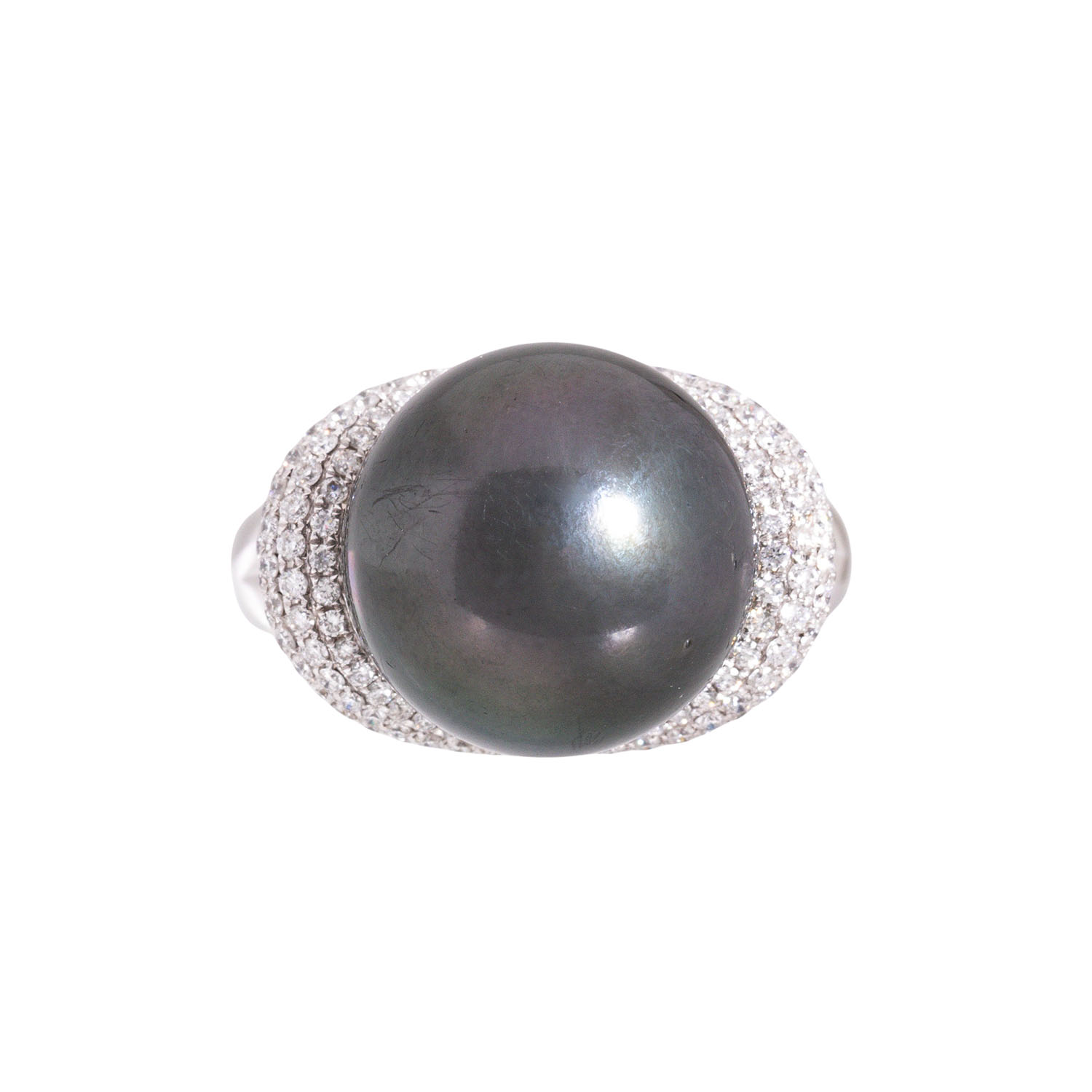 Ring mit schwarzer Tahitiperle und 4 Diamanten,