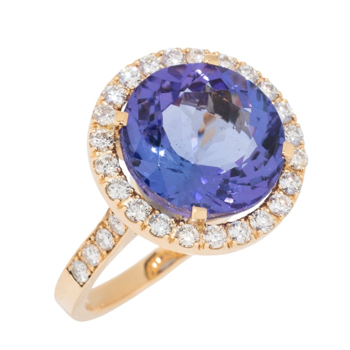 Ring mit feinem Tansanit ca. 8,0 ct und Diamanten