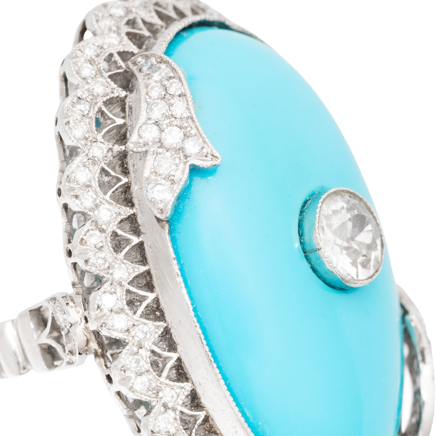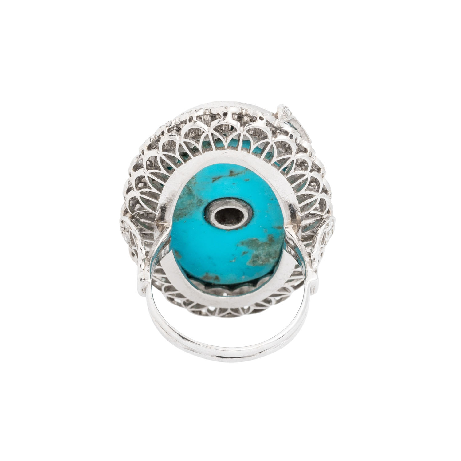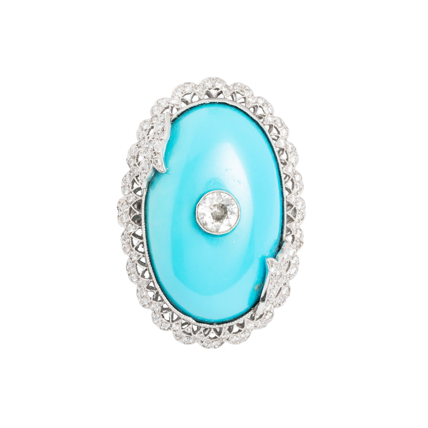 und Diamanten im Brillant- und Altschliff von zus. ca. 1,65 ct, zentraler Altschliff-Diamant ca. 0,65 ct, LGW (I)/ SI und Brillanten von zus. ca. 1,0 ct, von guter Farbe und mittlerer bis guter Reinheit, Platin, 22,5 g, RW: 56, 20. /21. Jh., guter Zustand. 1 Diamant fehlt.