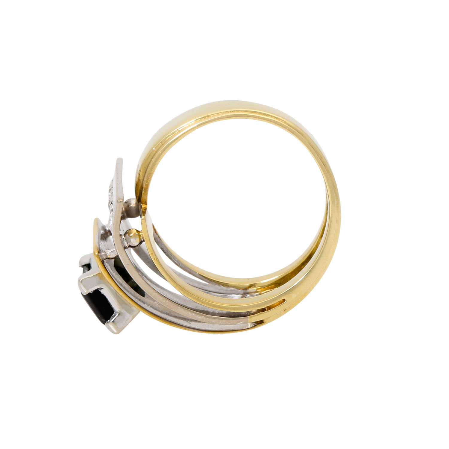 Ring mit 2 grünen Turmalinen und Brillant von ca. 1,05 ct,