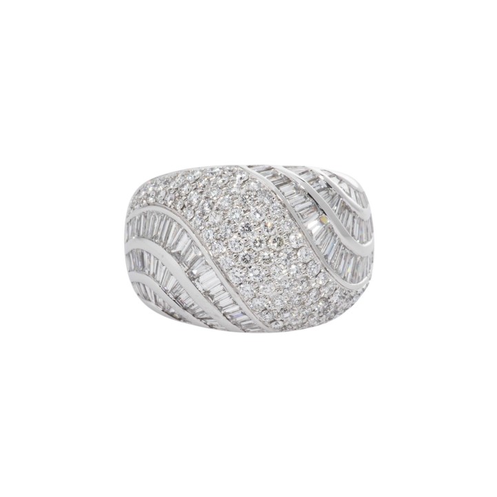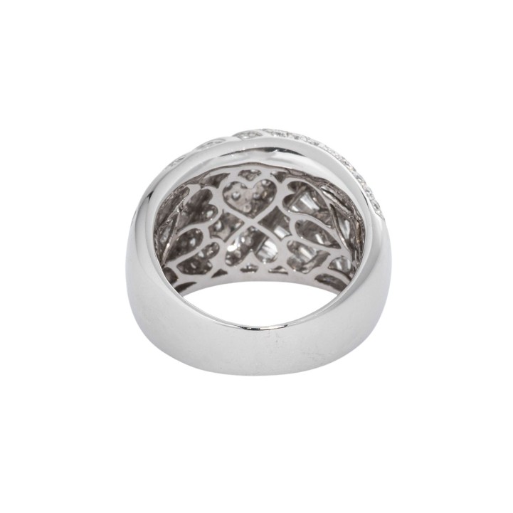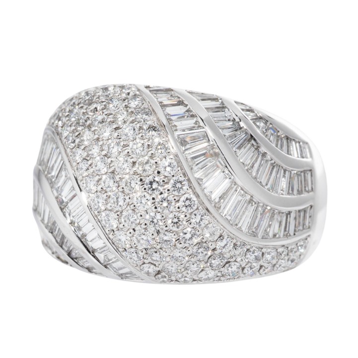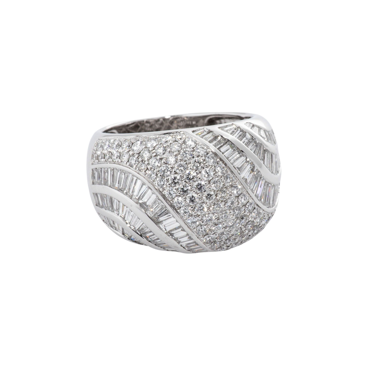 gute bis sehr gute Farbe u. Reinheit, NP: 13.800 €, 18K WG, 14,5 g, RW: 59,5, 21. Jh, leichte Tragespuren, 1 Stein bestoßen, Ringweitenänderung bei Wempe durchgeführt, inkl. Kaufbeleg. (4)