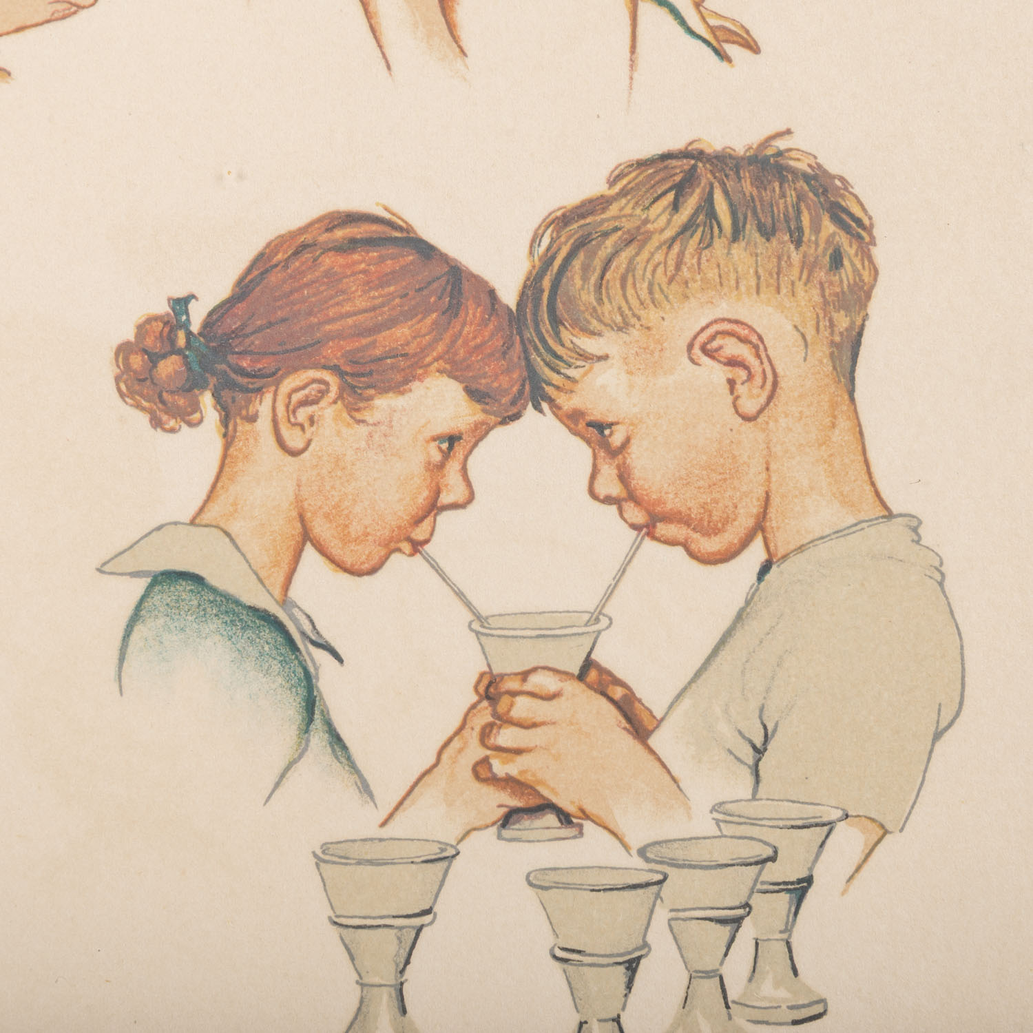 Farblithographie/Papier, u.re. mit Bleistift von Hand signiert., u.li. Bezeichnung 'AP', u.mi. Plakette mit der Bezeichnung 'Day in life of a boy'. HxB: Sichtmaße Blatt ca. 63 x 55 cm, Außenmaße Rahmen ca. 70 x 62 cm. Altersspuren, gebräunt. Hinter mattem Plexiglas gerahmt, mit Alters- und Beriebsspuren.