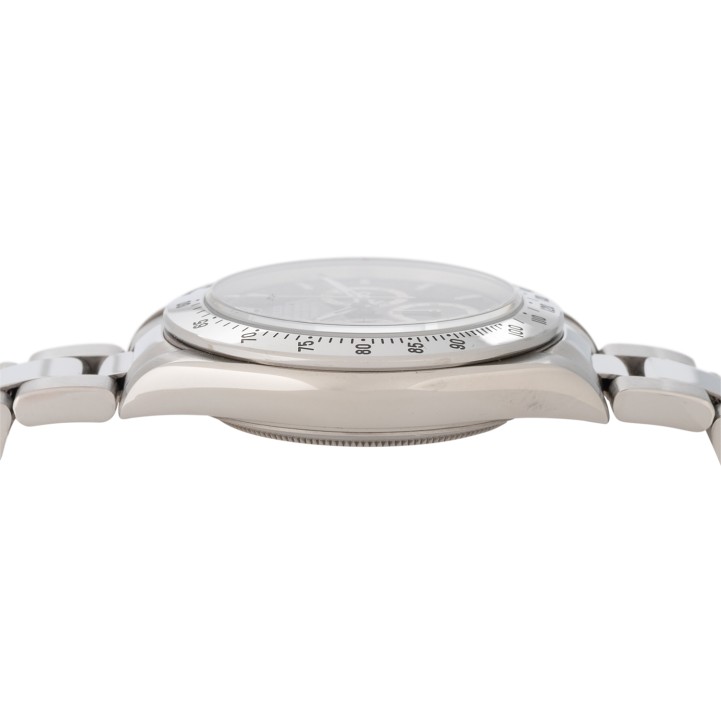 Edelstahl. Automatik-Werk Zenith El Primero Basis, Rolex Kal. 4030 mit frischer Revision von 12/2025 und sehr guten Gangwerten (+3 Sek., 289° Amplitude). Schwarzes Zifferblatt. Oysterband mit leichtem Stretch und Faltschließe. Guter Zustand, leichte Gebrauchsspuren. Serviceetui sowie 2 Revisionsbelege und Rechnungen von 2012 und 2025 anbei. Durchmesser ca. 40 mm, gemessen Ohne Krone. Passend bis zu ca. 19 cm Handgelenksumfang.