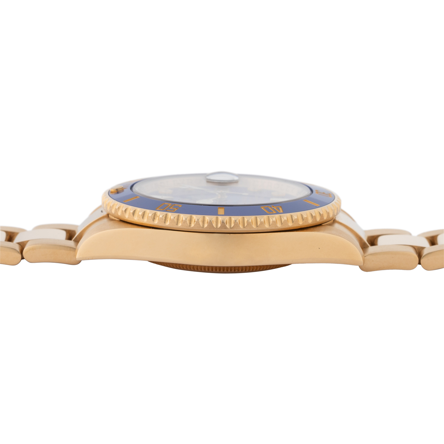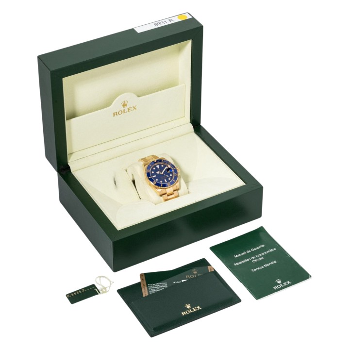 Gelbgold 18K. Seriennummer 84P63398. Automatik-Werk Kal. 31354 mit sehr guten Gangwerten (+6 s/d. 276° Amplitude). Blaues Zifferblatt mit Factory Diamanten Indizes und Datumsanzeige. Blaue Lünette mit goldfarbener Schrift. Rolex Armband aus 18K Gelbgold mit Faltschließe. Guter Zustand mit Tragespuren. Original Box, Hang Tag, Card Folder, Garantieheft und Garantiekarte anbei. Gekauft im Oktober 2013 bei Juwelier Eckstein in Saarbrücken. Durchmesser ca. 40 mm (gemessen ohne Krone). Passend bis zu ca. 17,5 cm Handgelenkumfang.
