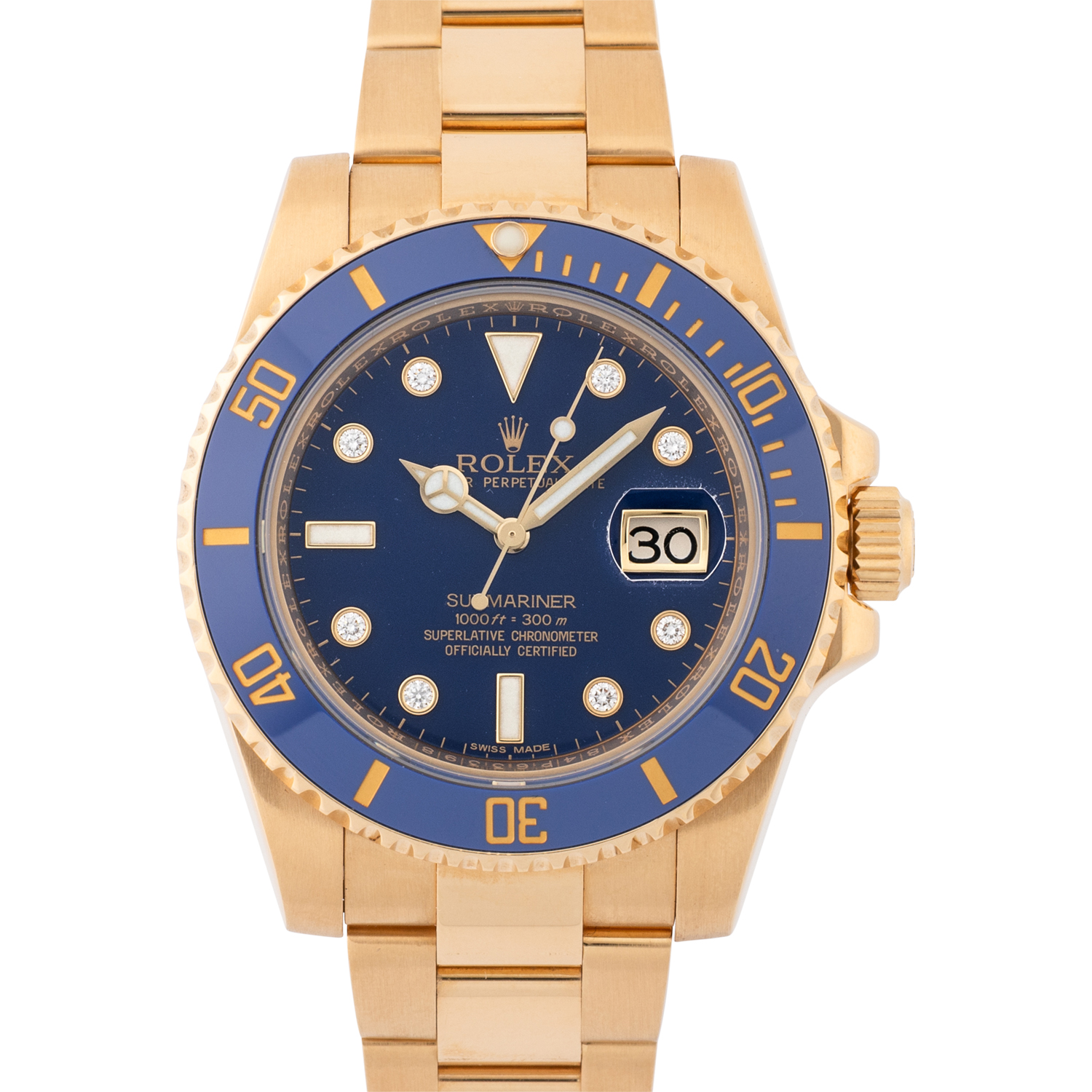 ROLEX Submariner Date Ref 116618LB 'Diamond Dial' LC100 Herrenuhr von 2013. Box und Papiere.