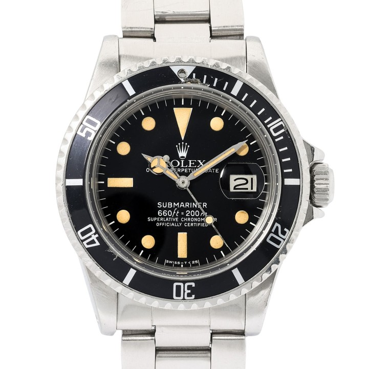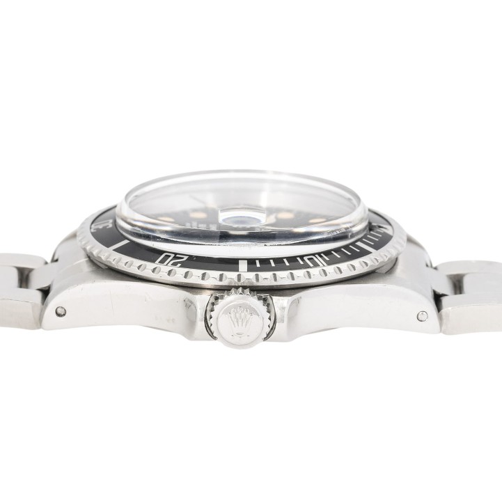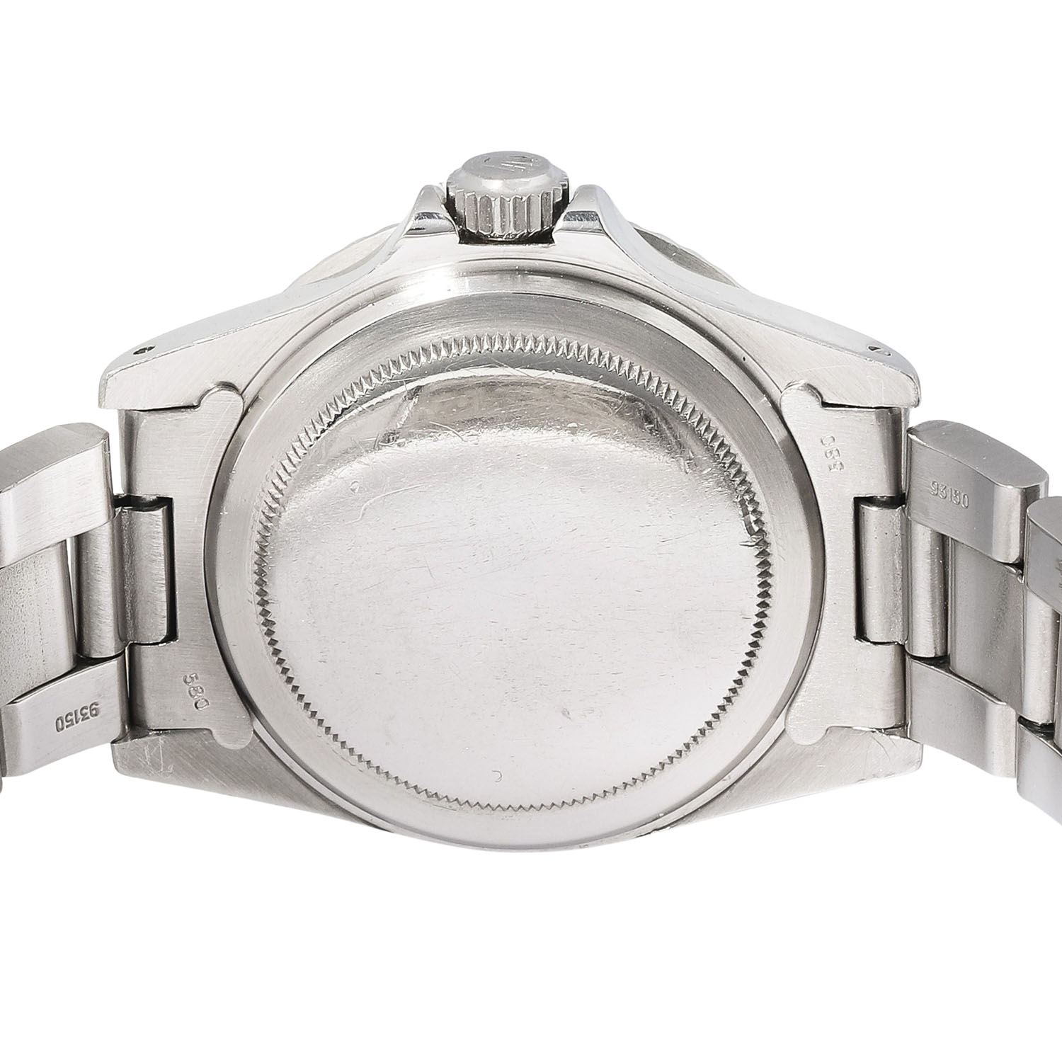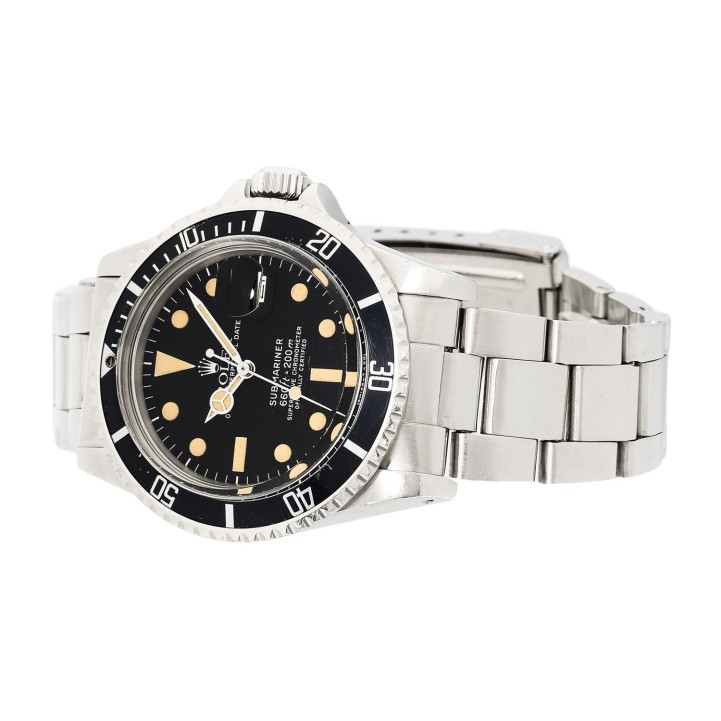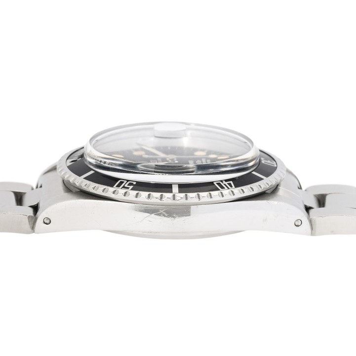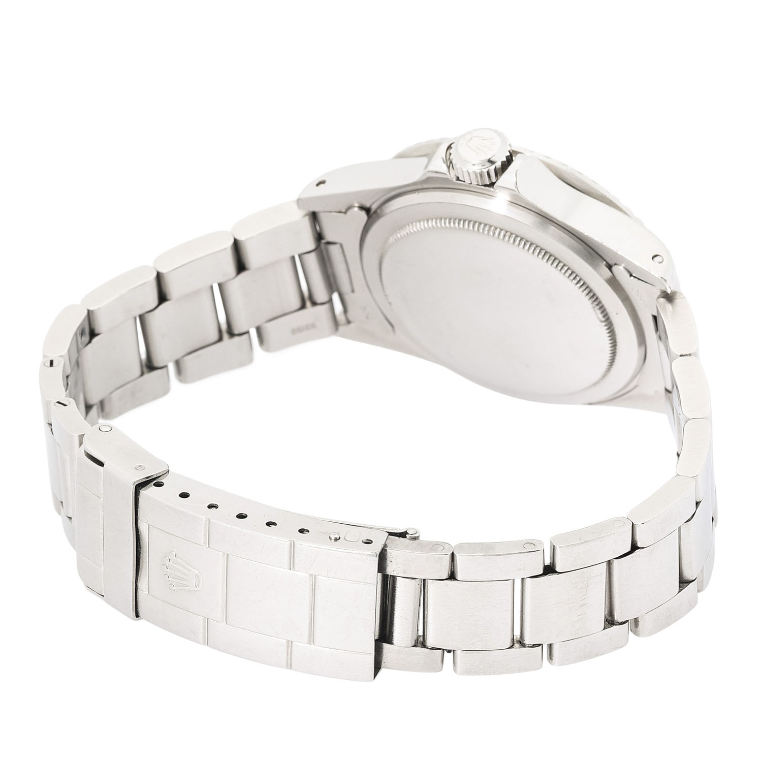 Edelstahl, Seriennummer 5264186. Automatik-Werk Kal. 1530, komplette hauseigene Revision 07/2025, sehr gute Gangwerte (+1s/Tag, 292° Amplitude). Mattschwarzes Tritium-Zifferblatt mit perfekter vanillefarbener Patina und Datumsanzeige, perfekt passende Tritium-Mercedeszeiger. Originales Rolex-Oysterarmband mit Sicherheitsfaltschließe und Taucherverlängerung, Schließencode I9 (ca. 1984). Sichtbare Tragespuren an Band und Gehäuse, Armband mit altersbedingtem Stretch. Servicekarte anbei. Durchmesser ca. 40 mm gemessen ohne Krone, passend für Handgelenksumfang von ca. 21 cm Handgelenksumfang.