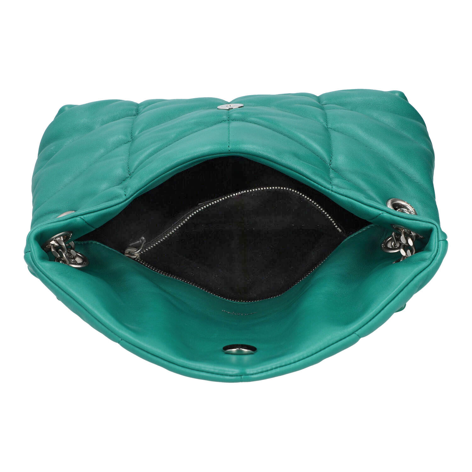 Akt. NP.: 2.600,-€. Aus gestepptem Nappaleder in DUnkelgrün mit silberfarbener Hardware. Überschlag mit magnetischem Verschluss, textiles Innenfutter in Schwarz mit kleinem Innenfach. Leichter Abrieb an den Ecken vorhanden.