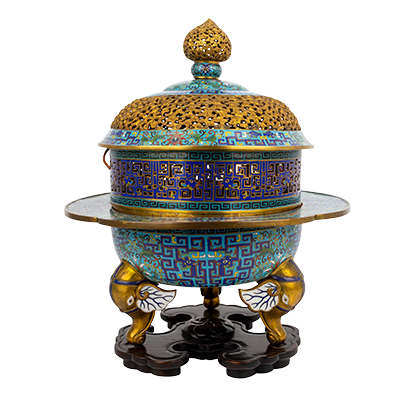 Großer dreiteiliger Cloisonné-Weihrauchbrenner. CHINA, um 1900.