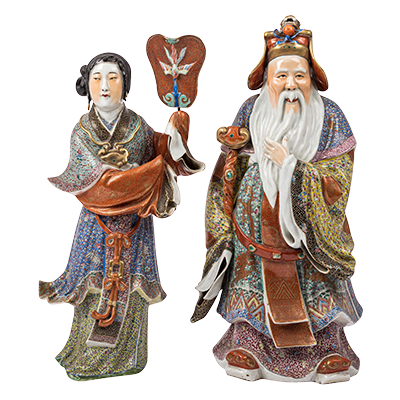 Paar Porzellanfiguren: der Erdgott Tudigong und seine Frau Tupido. CHINA.