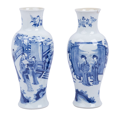 Paar blau-weisse Vasen aus Porzellan. CHINA, 1. Hälfte 20. Jh.,