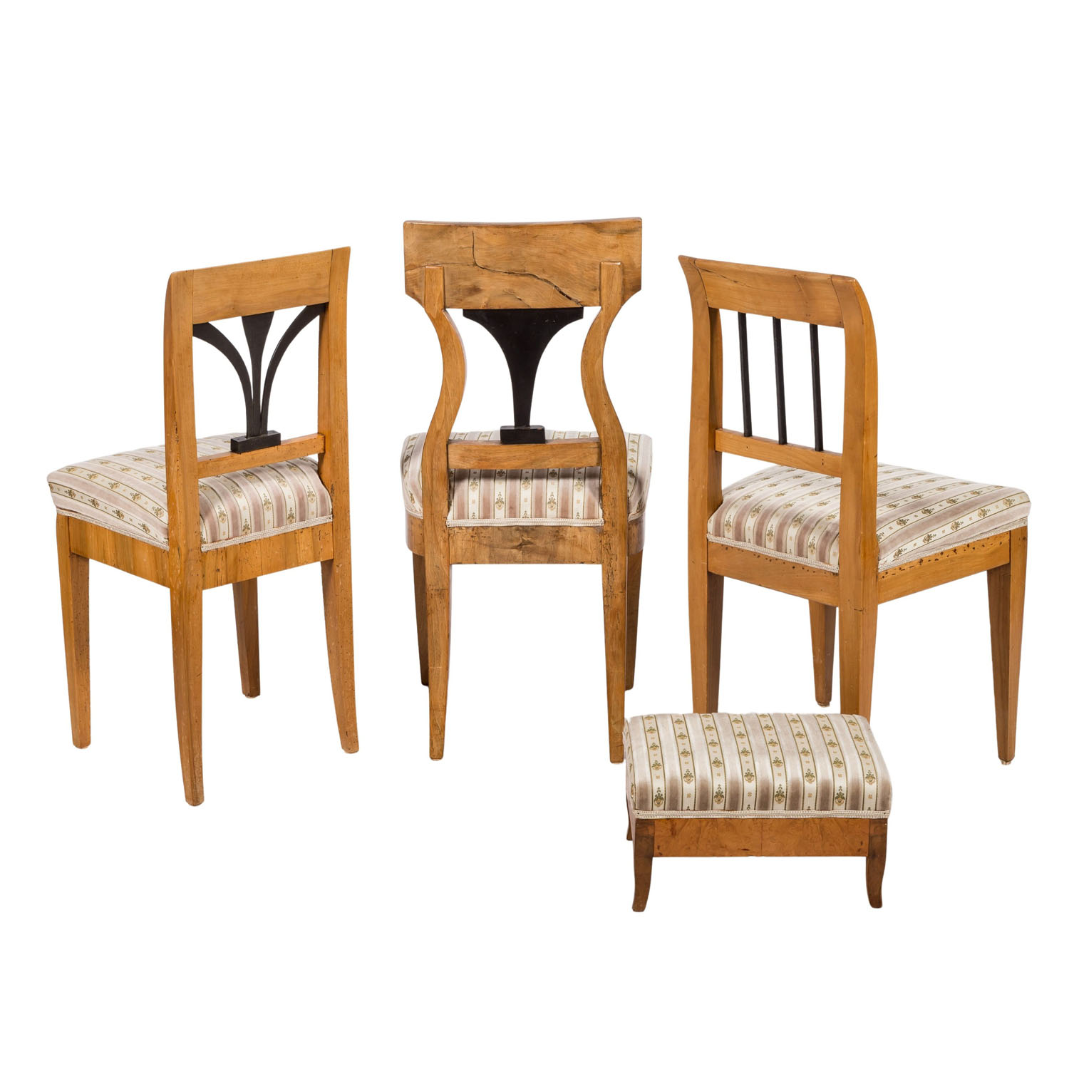SATZ 3 BIEDERMEIER-STÜHLE UND FUßSCHEMEL