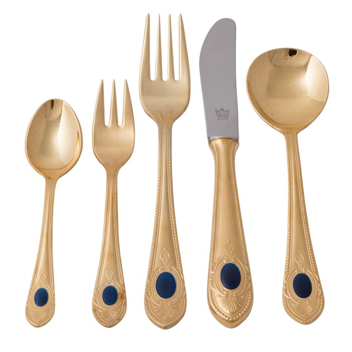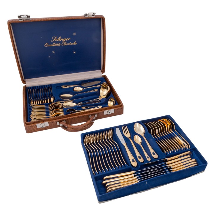SBS Solingen, Speisebesteck f. 12 Personen 'Toscana de luxe', hartvergoldet, 20. Jh.