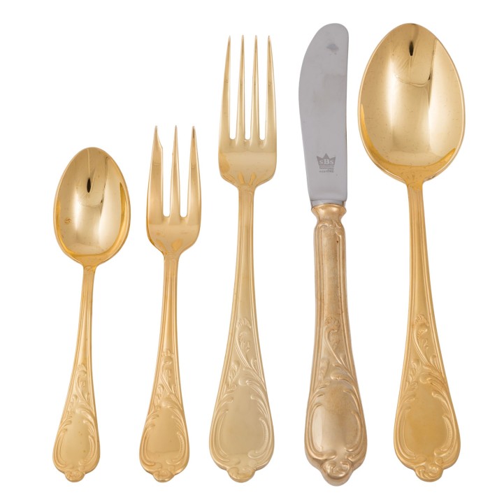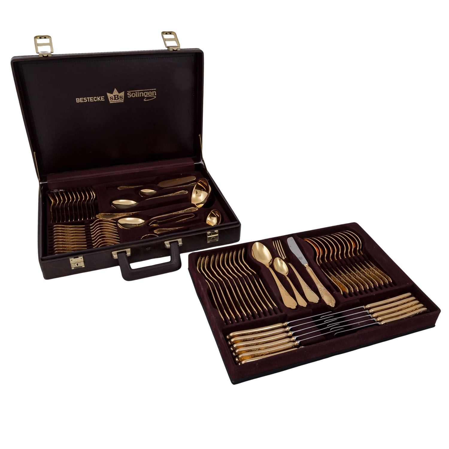 SBS Solingen, Speisebesteck f. 12 Personen 'Toscana de luxe', hartvergoldet, 20. Jh.