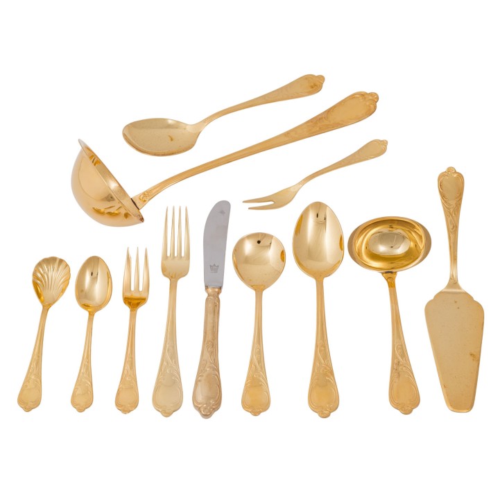 SBS Solingen, Speisebesteck f. 12 Personen 'Wien', hartvergoldet, 20. Jh.