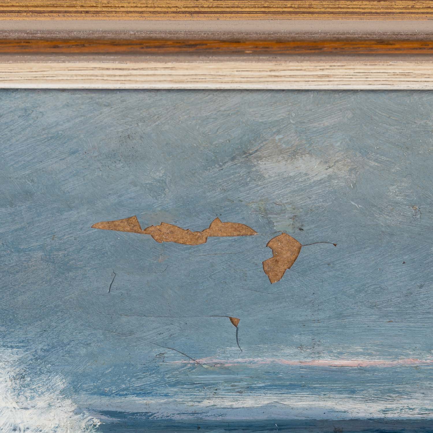 Öl auf Karton, u.re. bezeichnet, HxB: ca. 16x27 cm (ca. 27x38 cm mit Rahmen). Alterspuren, Farbablatzer, sowie im Bereich der Signatur retuschiert. Im Rahmen.
