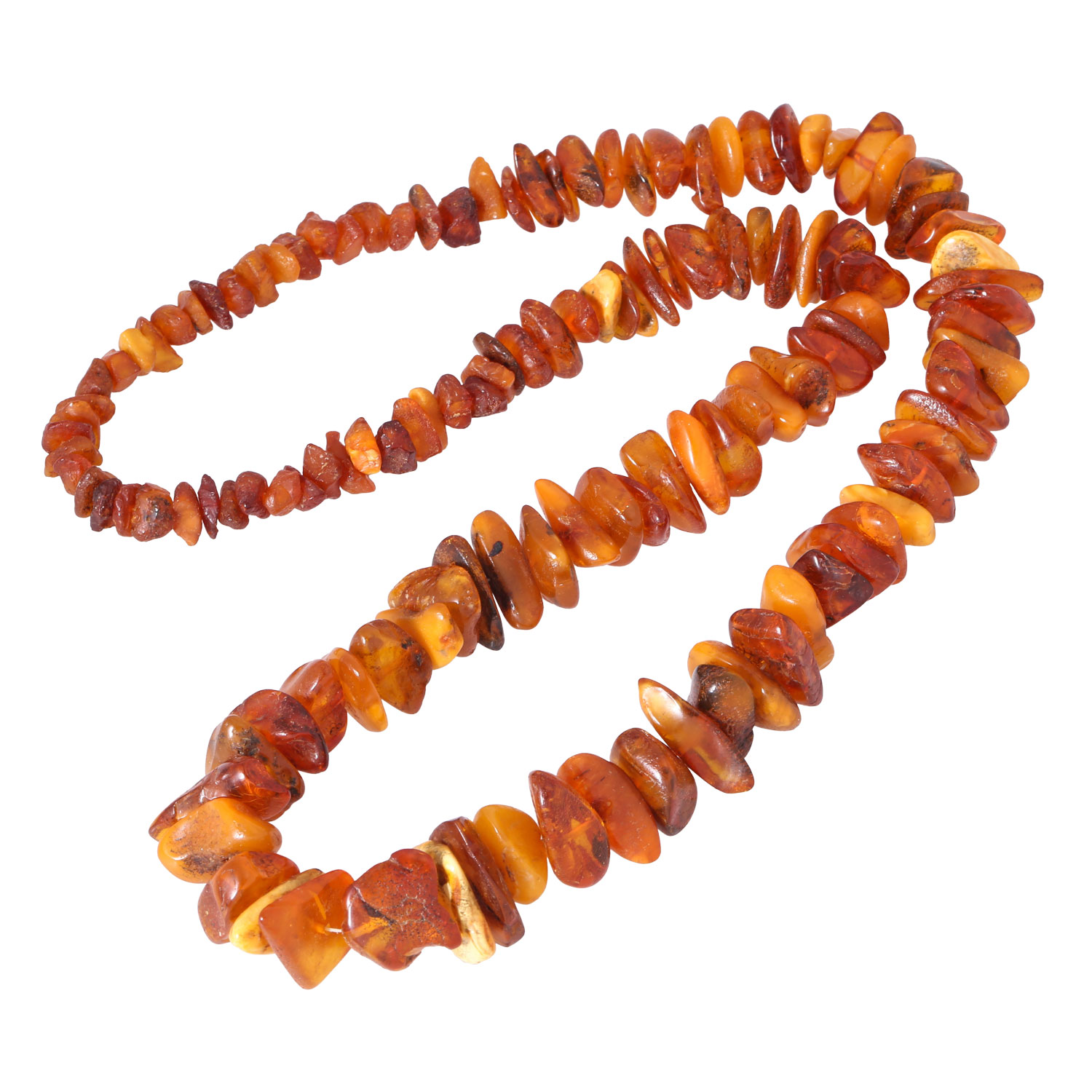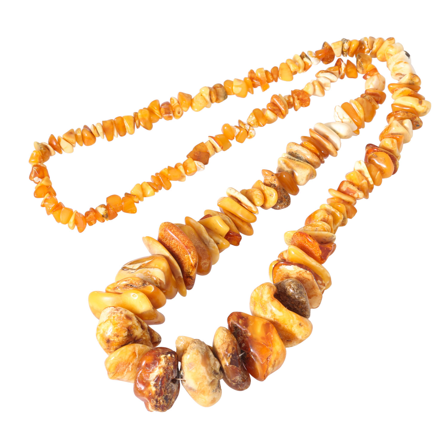 3 Bernsteinketten ohne Verschluss, L.: ca. 72 - 76 cm, 179,2 g, 20./21. Jh., guter Erhaltungszustand.