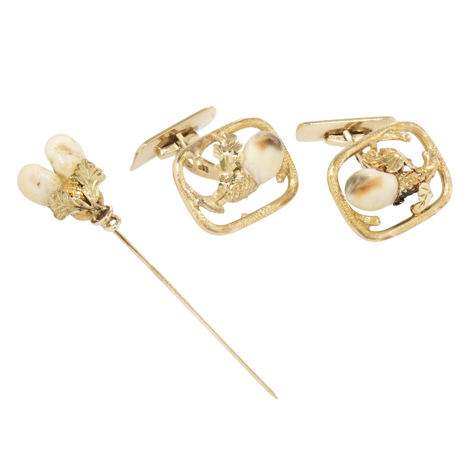 Schmuckset Manschettenknöpfe und Nadel mit Grandeln,