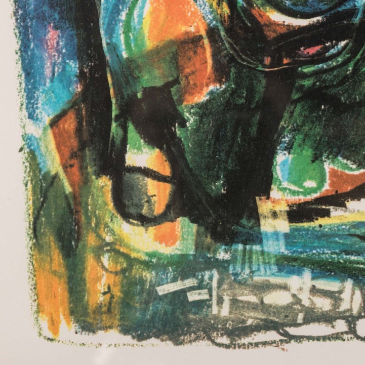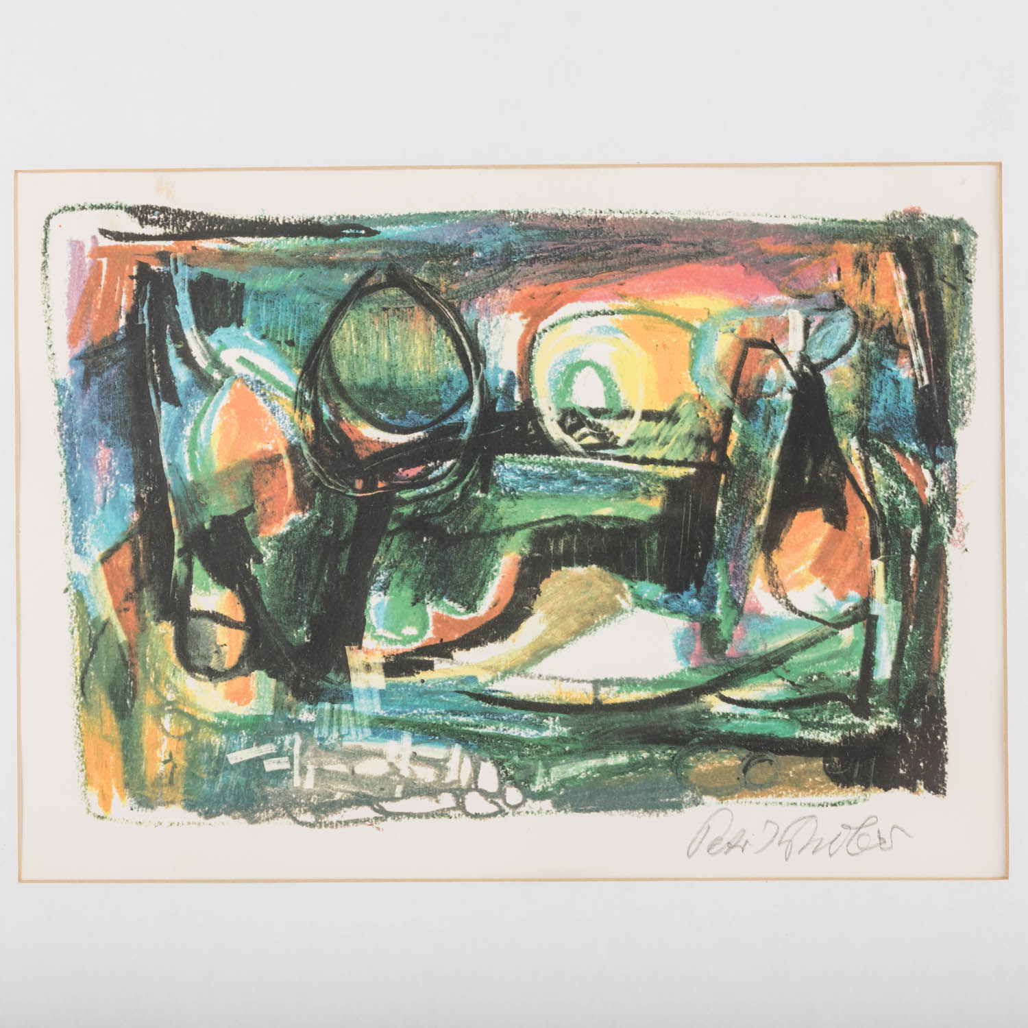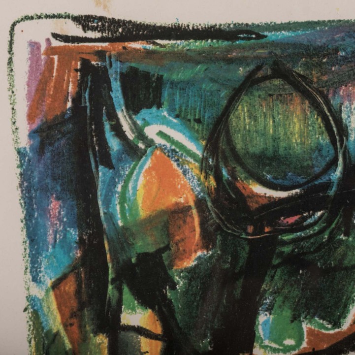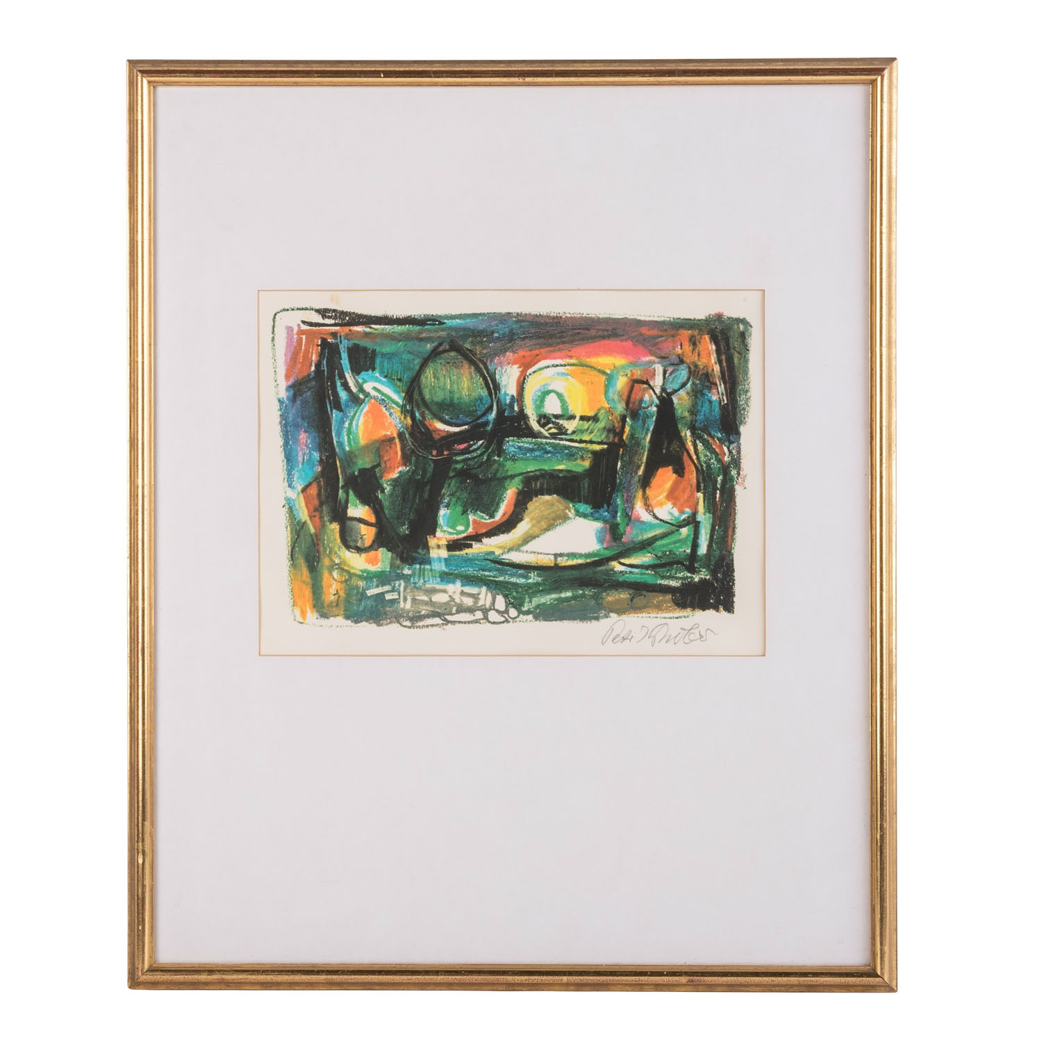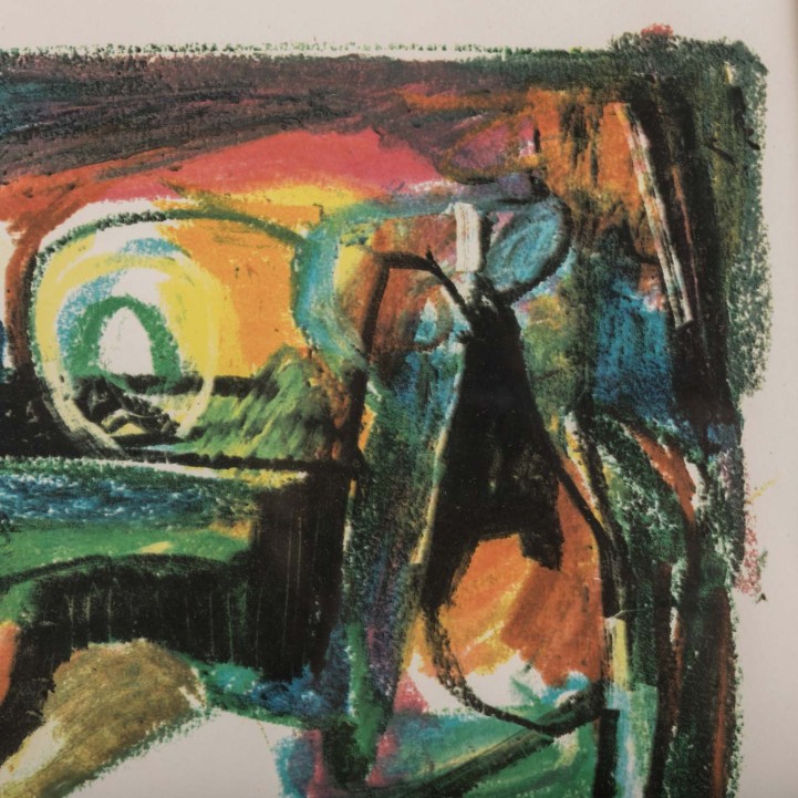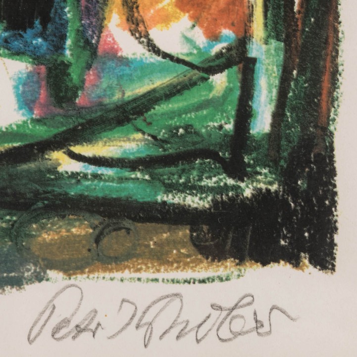 u.re. mit Bleistift von Hand signiert, Serigraphie/Papier, HxB: Platte ca. 20x30 cm, Passepartout-Ausschnitt ca. 22,5x31 cm, Außenmaße Rahmen ca. 57,5x48 cm. Alters- und Beriebsspuren, gebräunt, gewellt. Mit verglaste Rahmen (Alters- und Beriebsspuren).