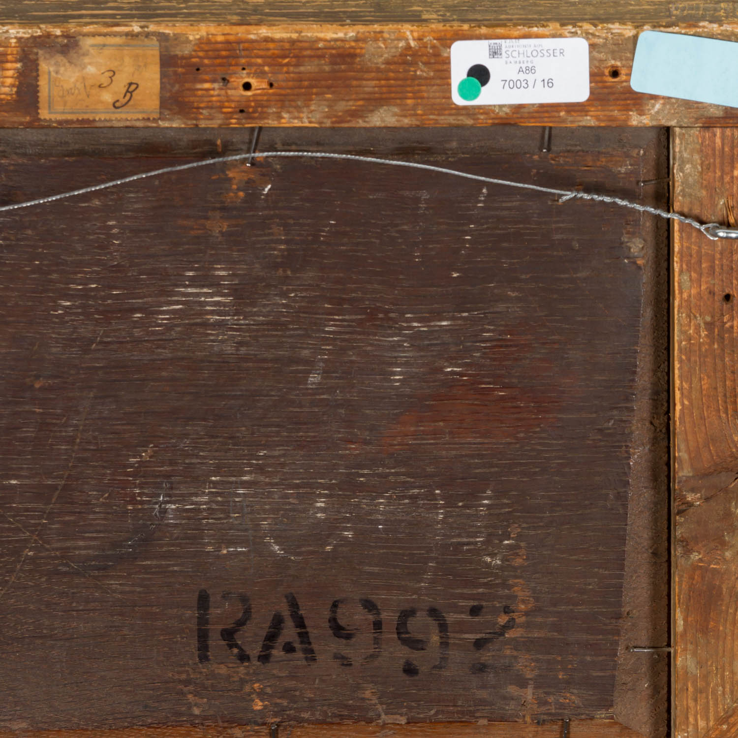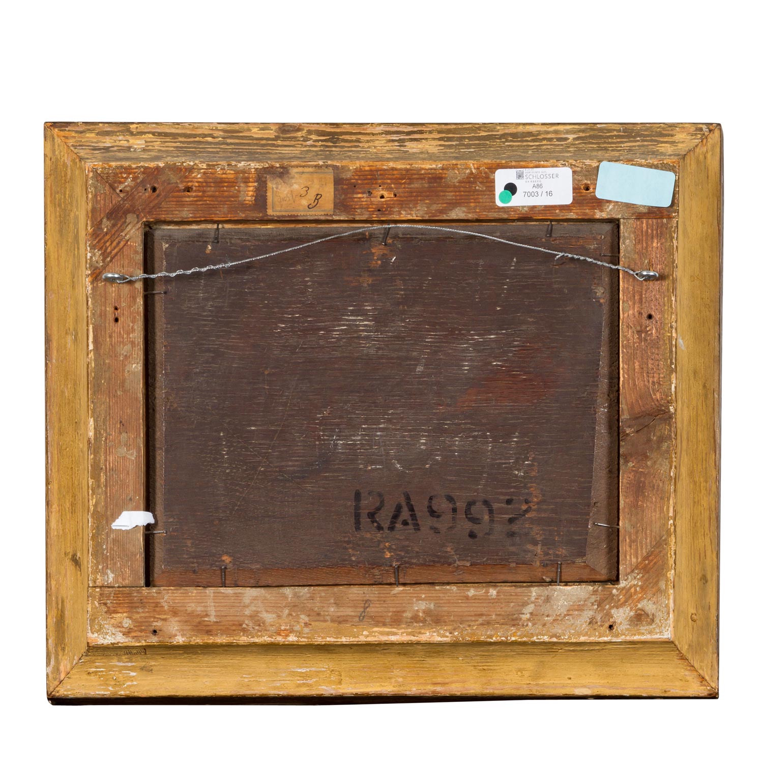 Öl auf Holz, HxB: ca. 21 x 28 cm (HxB Rahmen: ca. 35 x 41,5 cm). Alters- und Beriebspuren. Mit Rahmen (Beschädigungen).