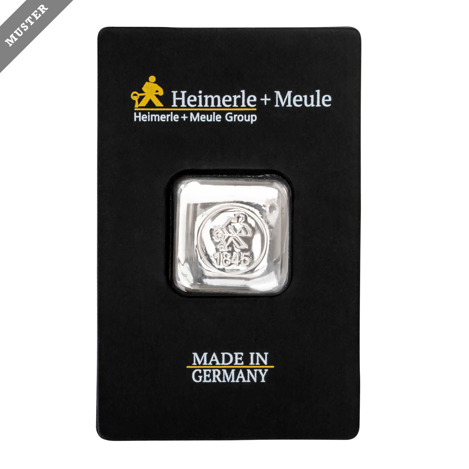 SILBERbarren - 1 oz Silber fein, gegossen, in Quadratform, Hersteller: Heimerle+Meule