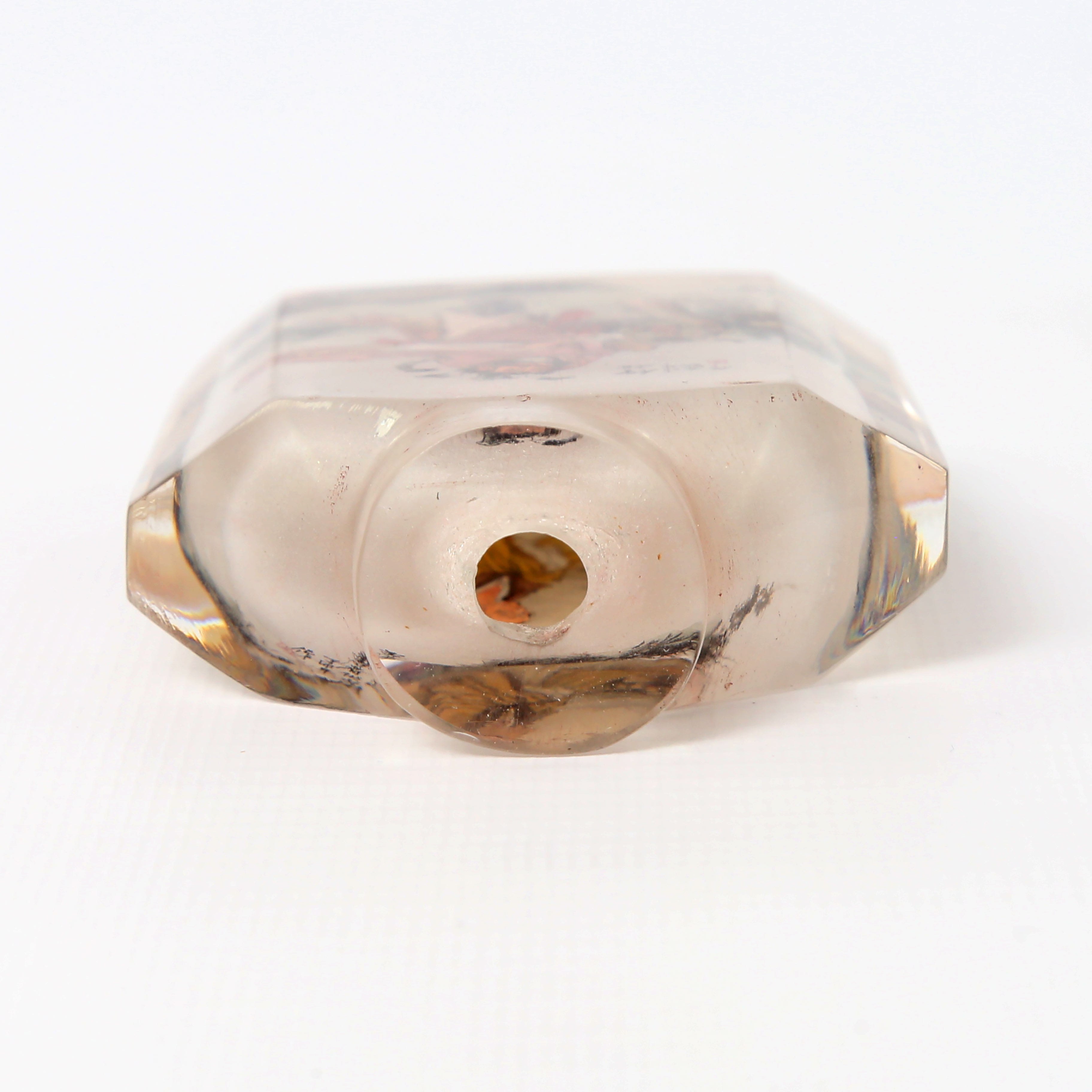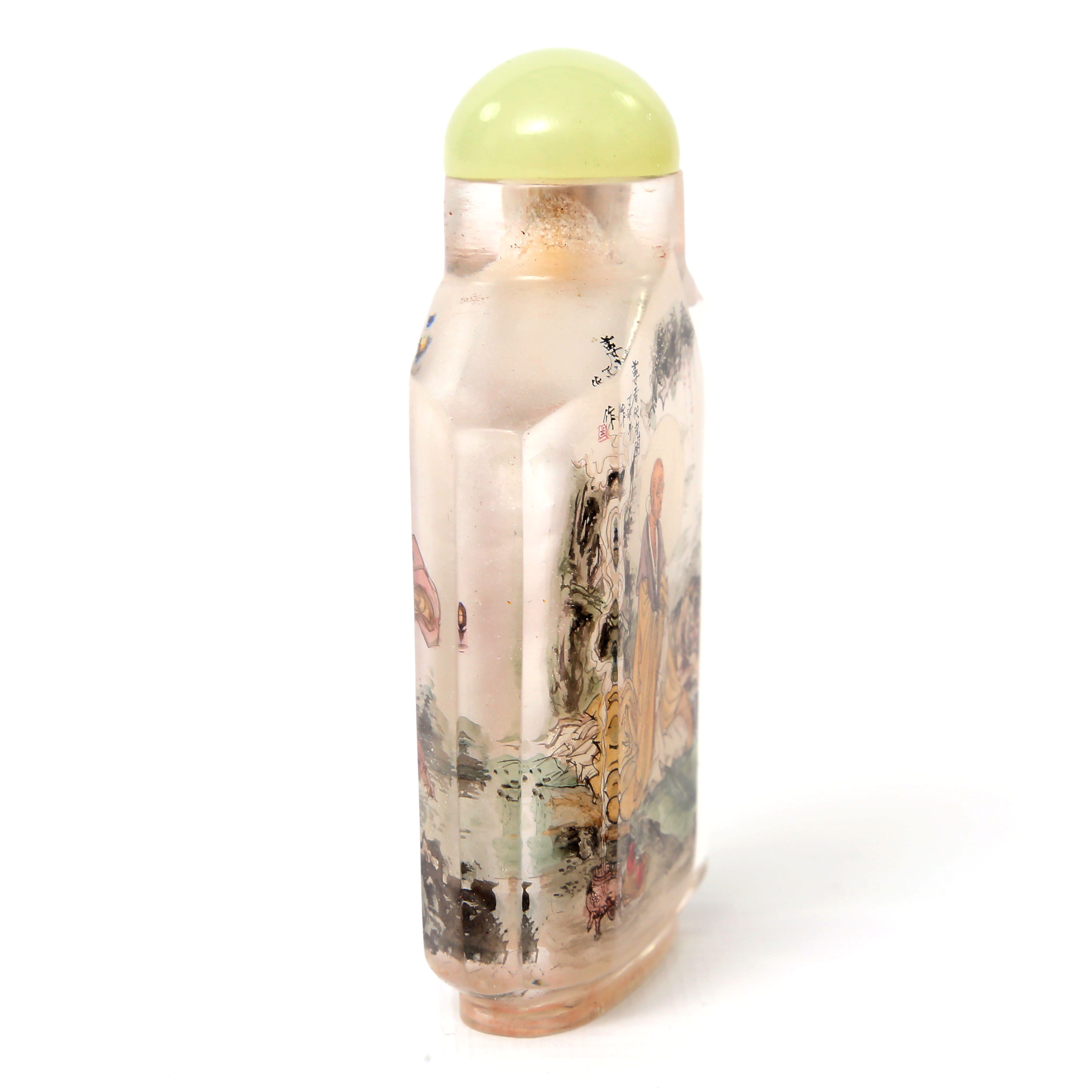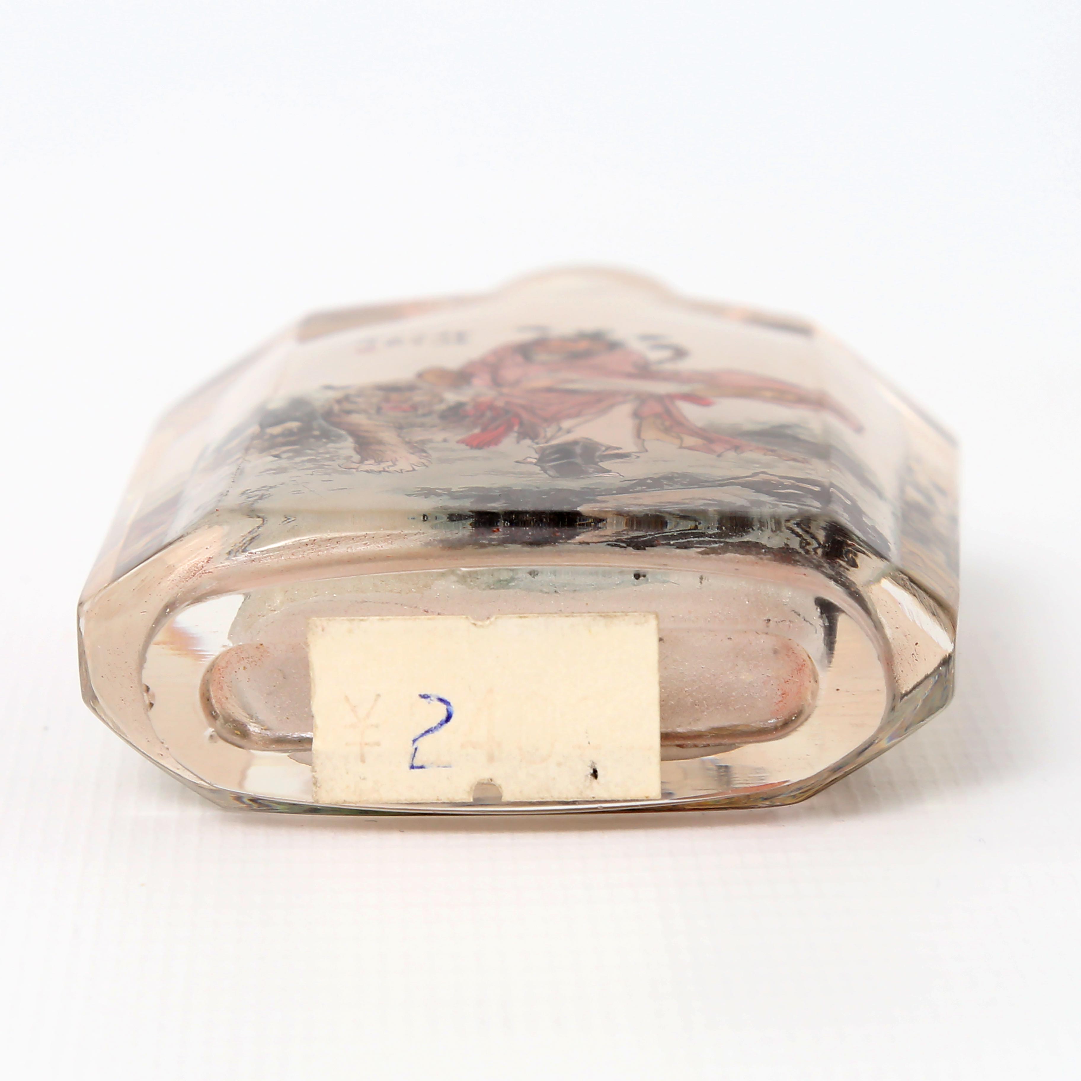 Snuff bottle. CHINA, 20. Jh. mit Hinterglasmalerei zweier Szenen mit Tigern. Der Tiger wird als Symbol für Mut und Tapferkeit verehrt und ist das dritte Tier im Kreiszeichen. Ausserdem steht der Tiger auch für den 4.und 6. Offiziersrang. Sehr schöne Arbeit mit Stöpsel aus grüner Jade, H ca. 9,5 cm