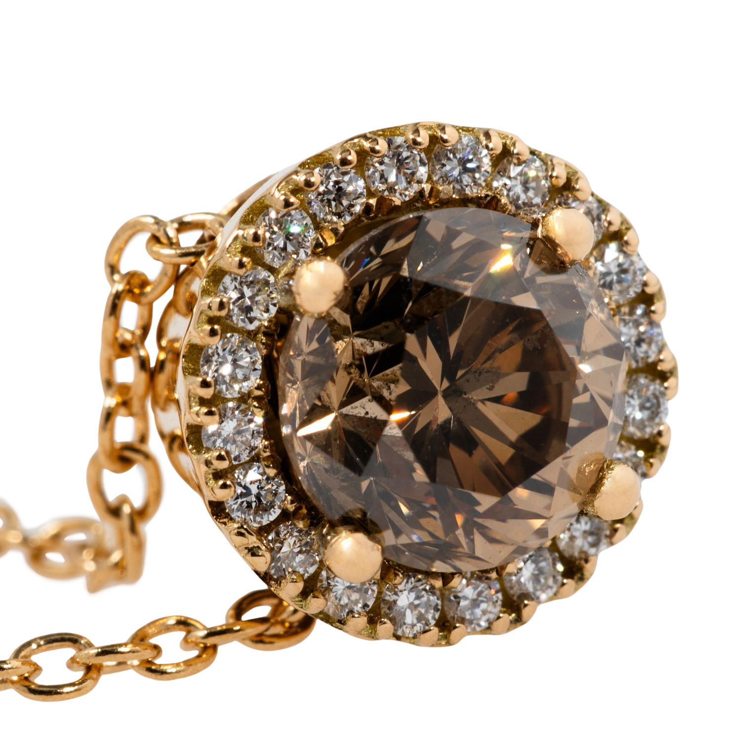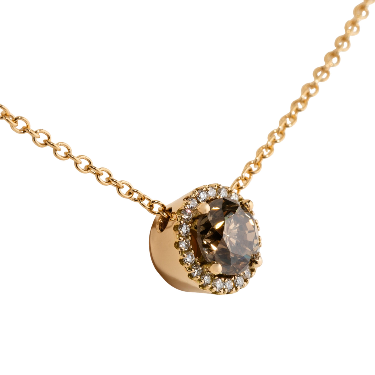 FANCY DARK BROWNISH YELLOWmit IGI Expertise F2E3880 u. Brill. ca. 0,25 ct. FW/VSI. GG 18 K. 5,46 g. Länge ca. 42 cm. Hochwertige Goldschmeidearbeit.