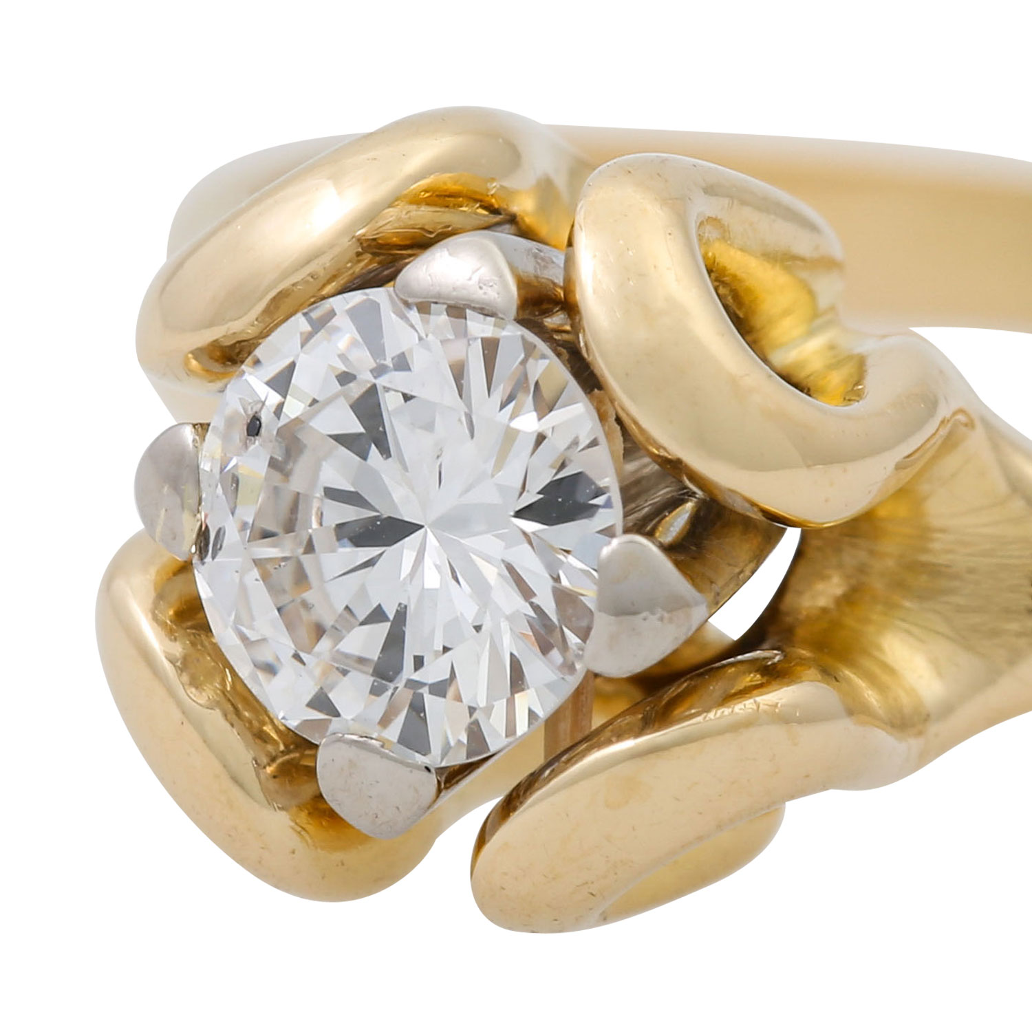 Solitär-Ring, bes. mit 1 Brillant ca. 1,42 cts. WEISS H/VVSI