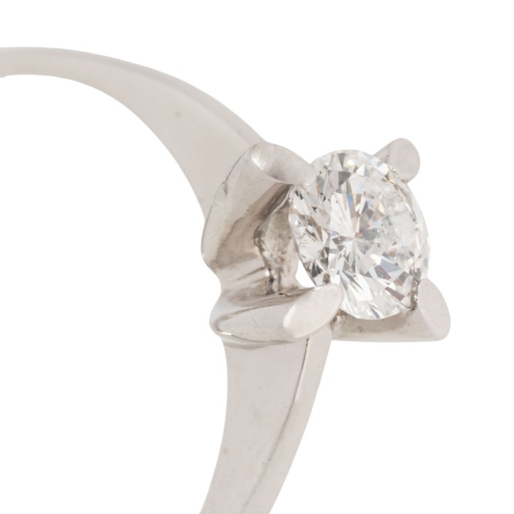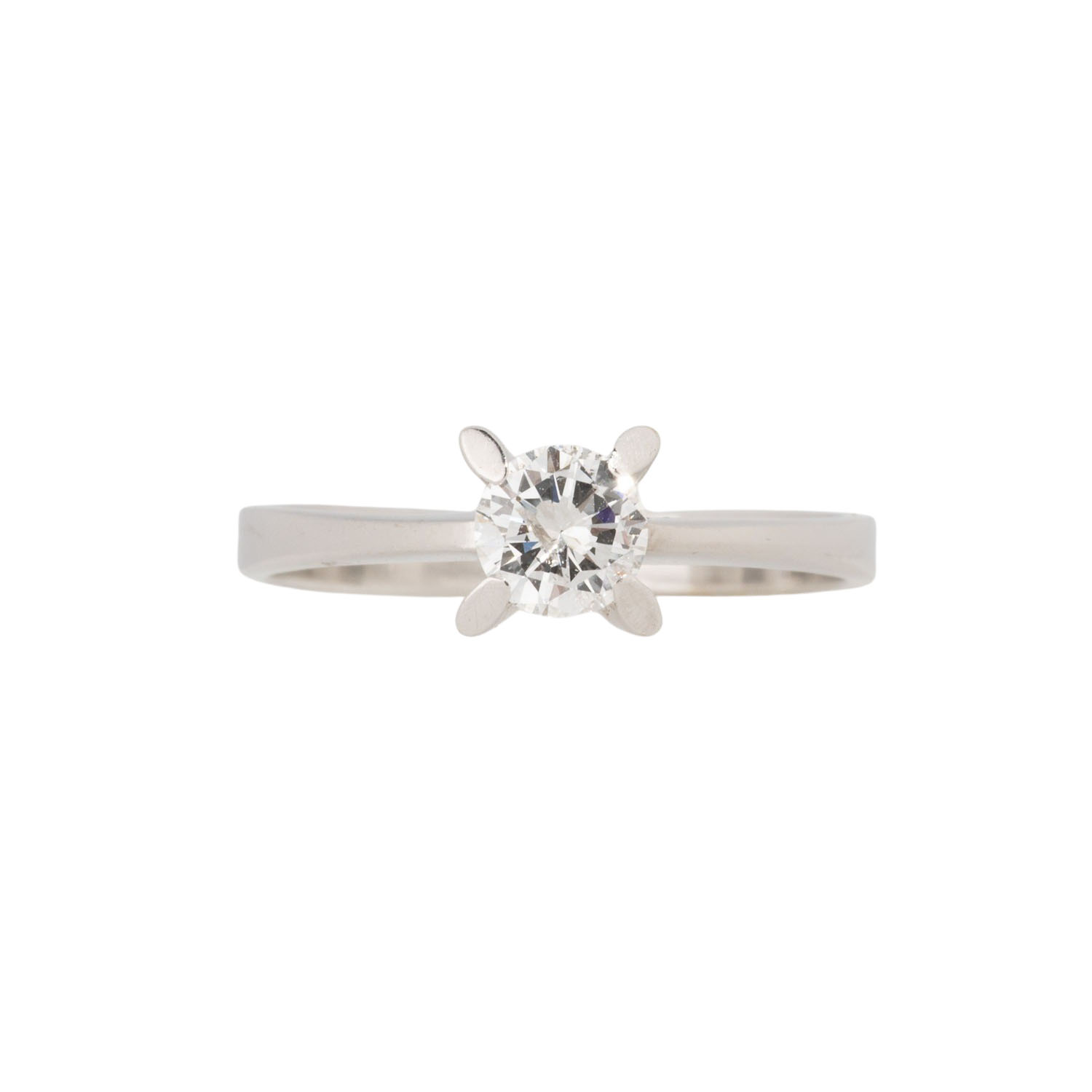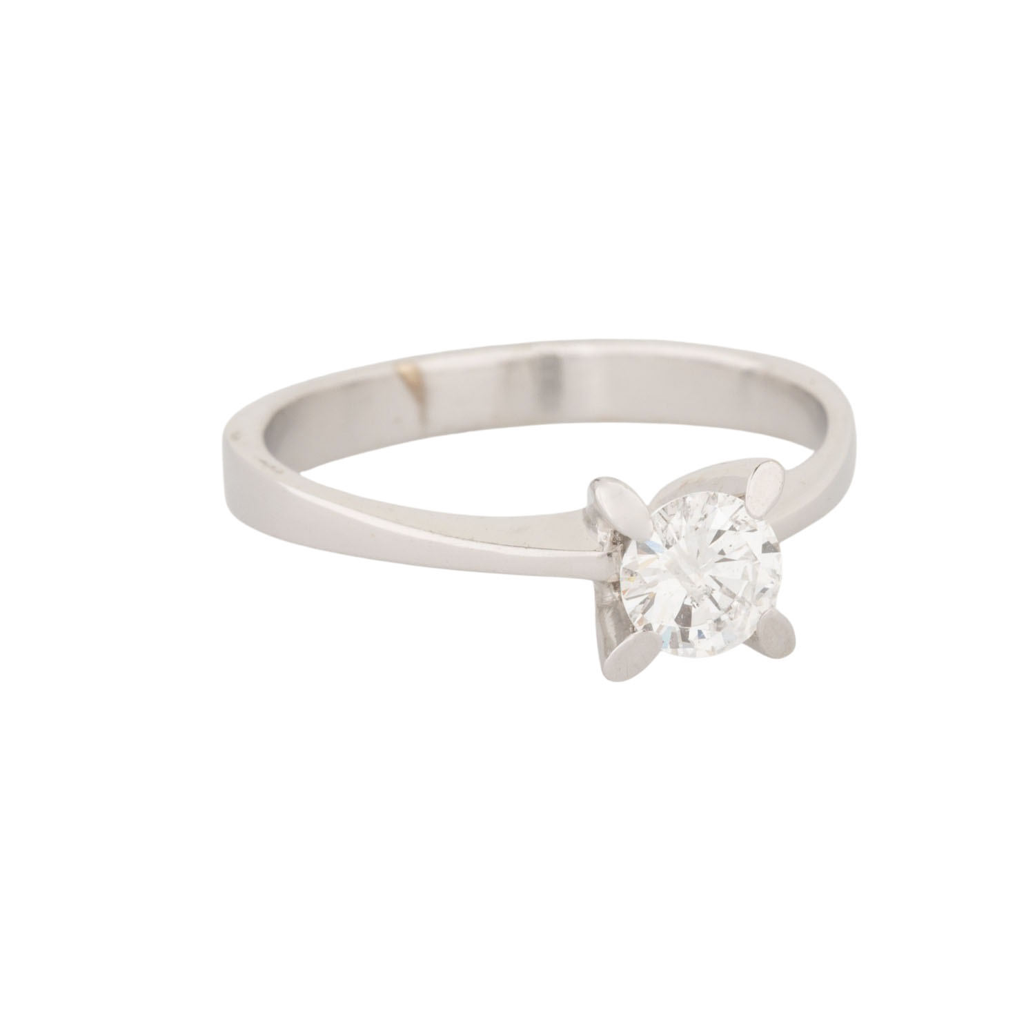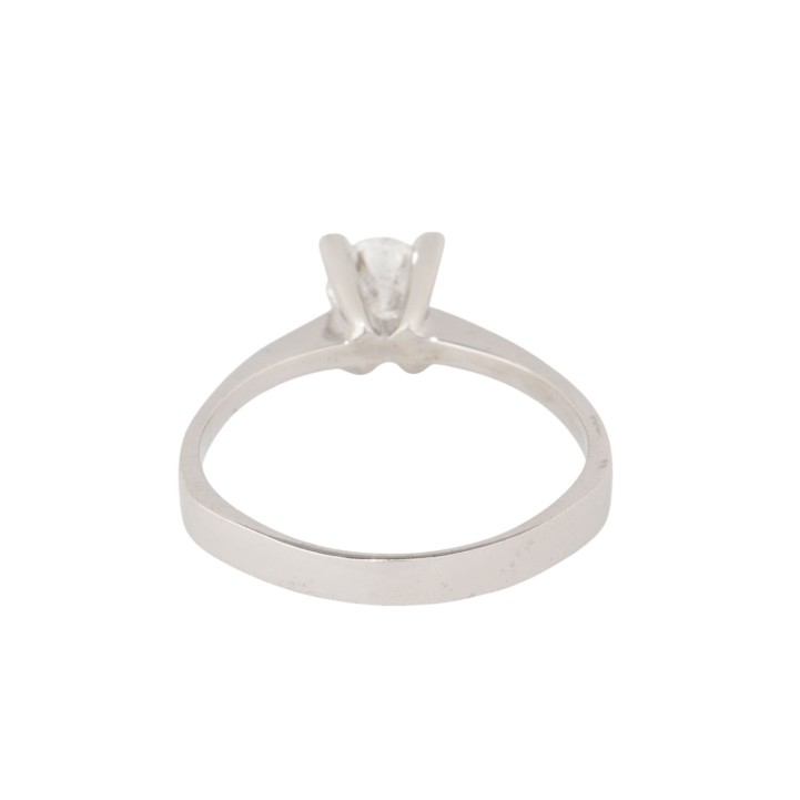 ca. 0,57 ct, WEISS (H)/P, WG 14K, 3 g, RW: 58, B: ca. 2,8 - 6,6 mm, 2. H. 20. Jh., leichte Tragespuren, Ringweitenänderung sichtbar.