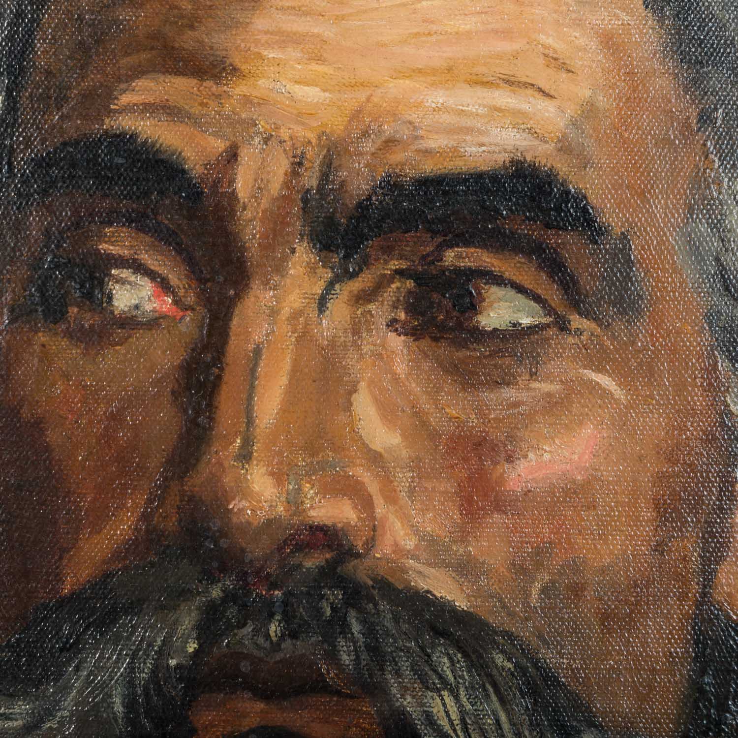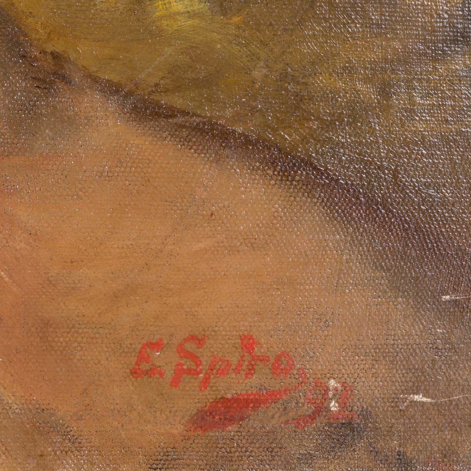 Brustbildnis eines sich umblickenden Mannes, u.re. signiert und datiert 'E. Spiro, 92', Öl/Leinwand auf Karton aufgezogen, HxB: ca. 47x35,5 cm (69x59 cm mit Rahmen). Alters- und Beriebspuren, restauriert. An den oberen Ecken auf Karton montiert, mit Passepartout gerahmt. VERSO Auktionsetikett Villa Grisebach, Los 865, Auktion 69. ANBEI Datenblatt mit WVZ-Angabe: Wilko von Abercron, E. Spiro, 1990, Nr. A 92-2. PROVENIENZ: Nachlass eines Berliner Kunsthändlers.